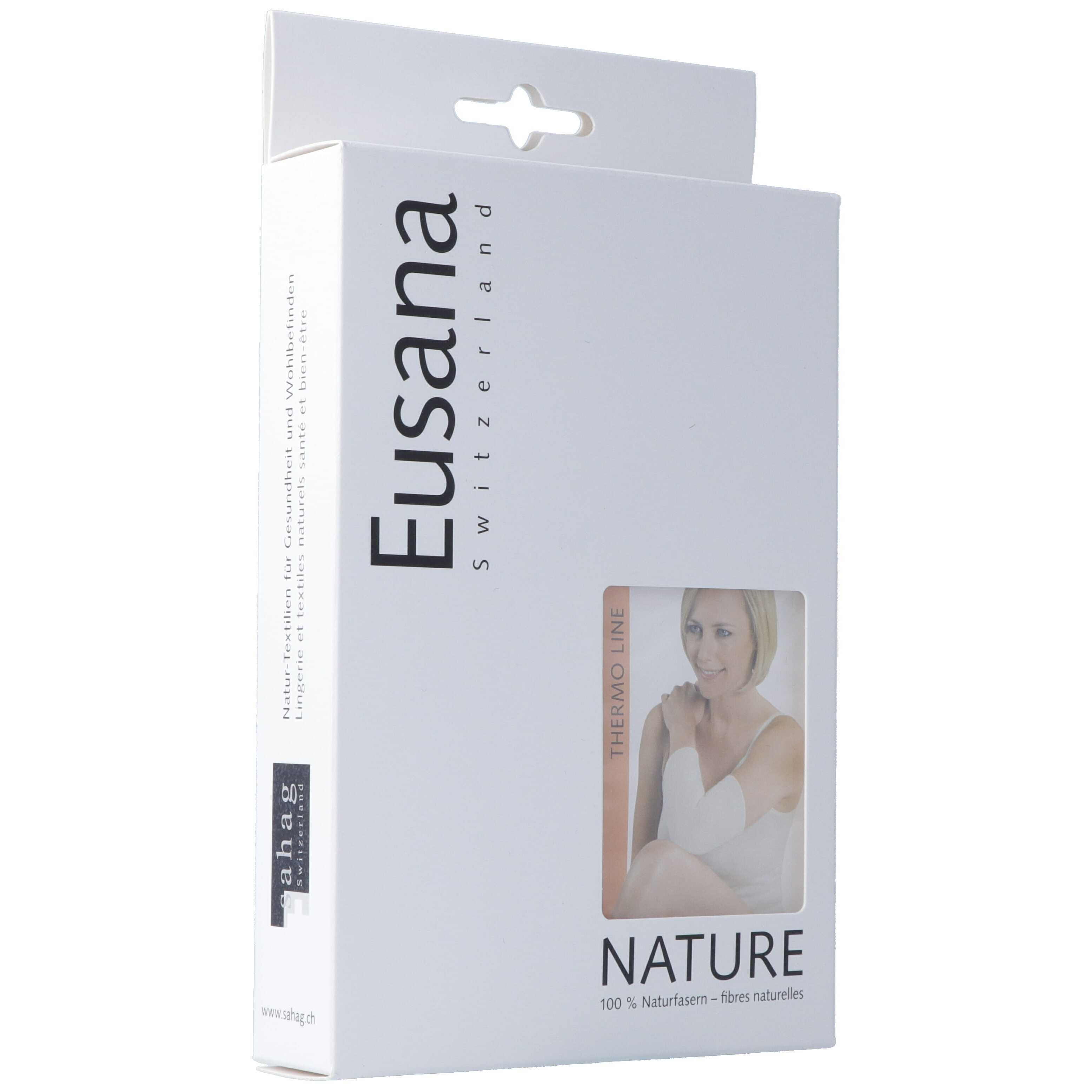 Hochwertige Merinowolle umhüllt mit feinster Seide verwöhnen Ihre Haut und sorgen für einen optimalen Klimakomfort. Das seidenweiche Traggefühl, vereint mit den wärmeausgleichenden Eigenschaften kuschelweicher Wolle, machen Eusana zum geeigneten Begleiter während der kalten Jahreszeit. Eusana besteht aus 100% reinen Naturfasern und bietet Ihnen gesunde Wärme. Eine therapeutische Wirkung erzielen Sie mit Eusana Thermo Line, welche Ihre sensiblen Körperpartien schützt und zur Prävention von Unterkühlung und Schmerzen beiträgt.