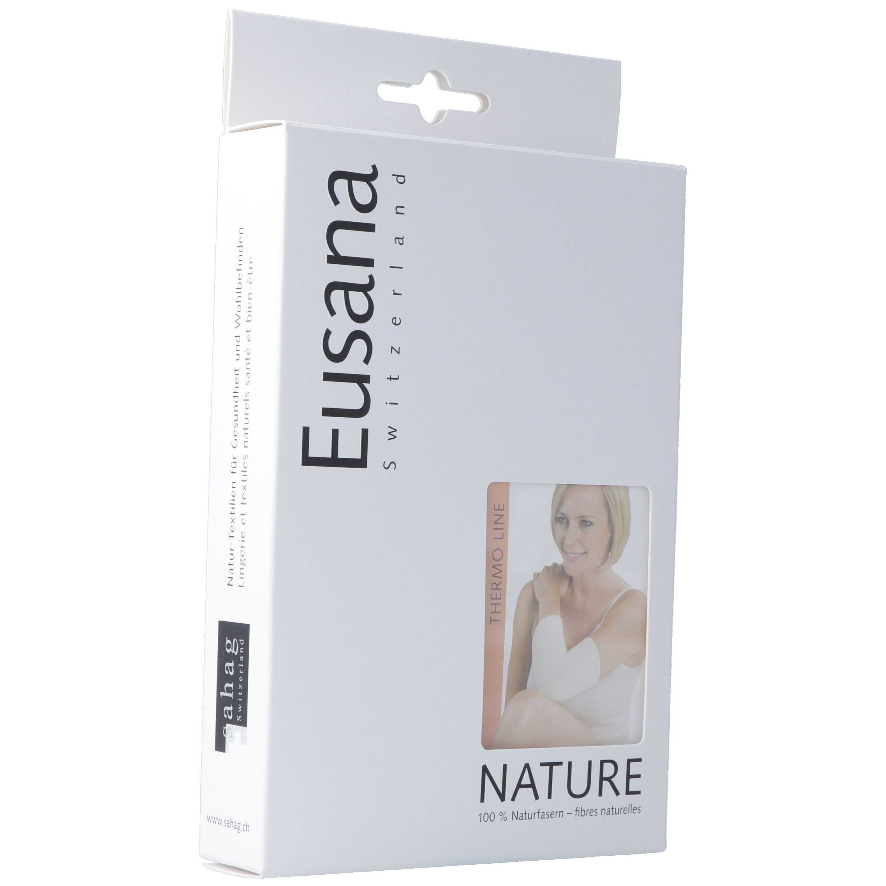 Hochwertige Merinowolle umhüllt mit feinster Seide verwöhnen Ihre Haut und sorgen für einen optimalen Klimakomfort. Das seidenweiche Traggefühl, vereint mit den wärmeausgleichenden Eigenschaften kuschelweicher Wolle, machen Eusana zum geeigneten Begleiter während der kalten Jahreszeit. Eusana besteht aus 100% reinen Naturfasern und bietet Ihnen gesunde Wärme. Eine therapeutische Wirkung erzielen Sie mit Eusana Thermo Line, welche Ihre sensiblen Körperpartien schützt und zur Prävention von Unterkühlung und Schmerzen beiträgt.