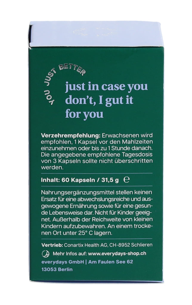 Haben Sie Bohnen, Fleisch, Rohkost, fettiges Essen, Kohlgerichte gegessen oder hatten sie einfach mengenmässig zuviel auf dem Menüplan? everydays Flat Belly hilft Ihnen ab der ersten Einnahme. Sie freuen sich auf eine festliche Mahlzeit oder haben Lust auf Fast Food? Essen Sie gerne viel Rohkost? Kein Problem! Holen Sie Flat Belly zu Hilfe und fühlen Sie sich gut. Flat Belly ist sowohl für den spontanen Bedarf als auch für die dauerhafte Langzeiteinnahme geeignet.