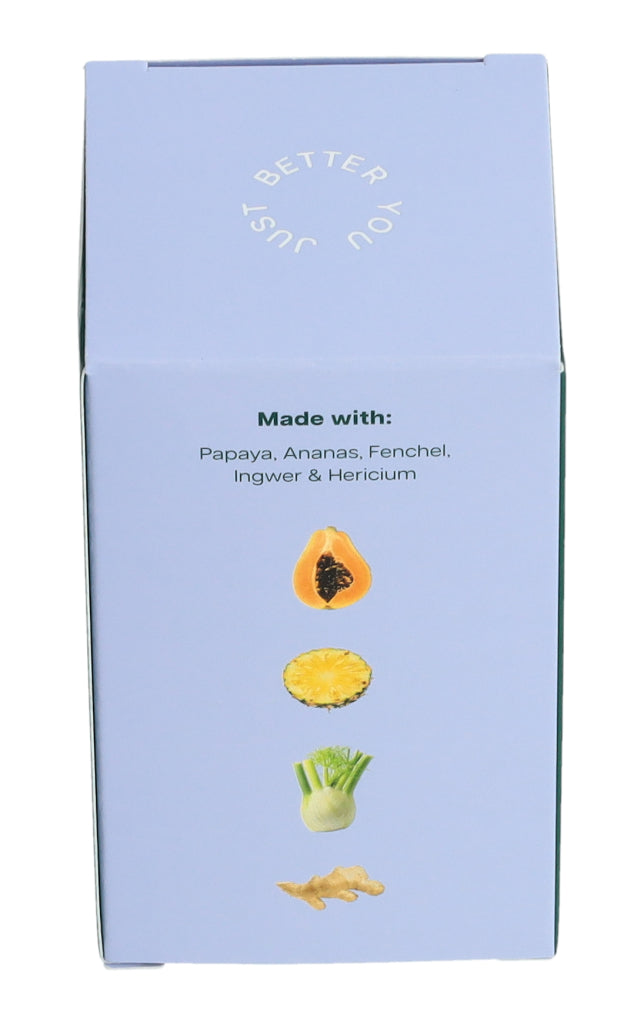 Fühlen Sie sich wohl nach jedem Essen! Flat Belly enthält die 11 wichtigsten Verdauungsenzyme im idealen Verhältnis und mit hoher Aktivität. Gewonnen werden die Enzyme aus den Früchten Ananas und Papaya sowie dem Vitalpilz Igel-Stachelbart und der Hefe. Hinzu kommen Fenchel und Ingwerextrakt.