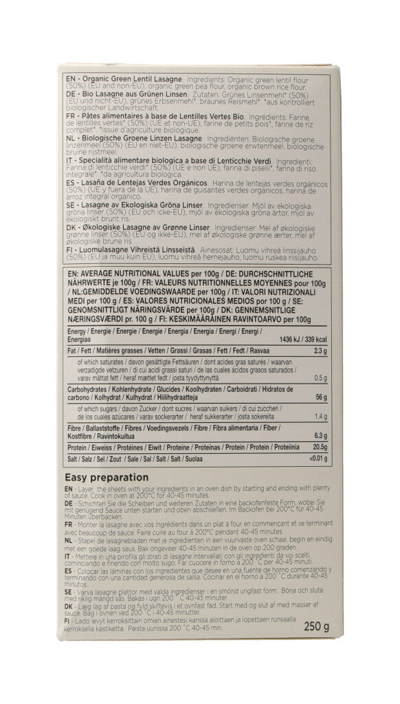 Explore Cuisine Lasagne aus Grünen Linsen Bio 250 g