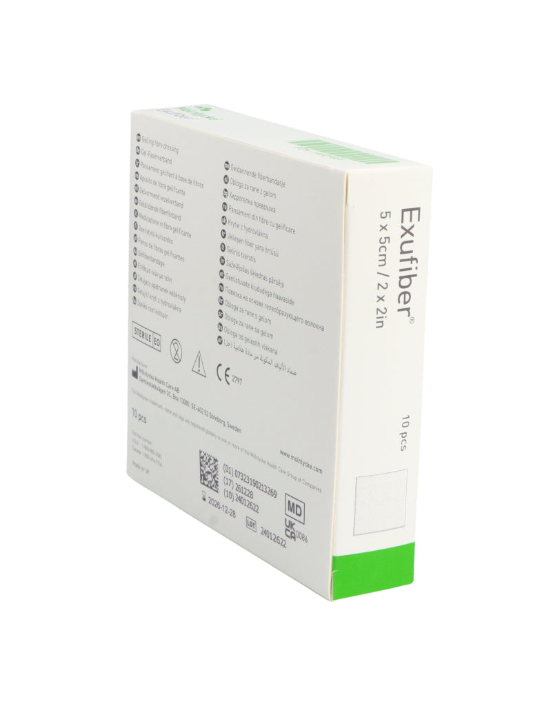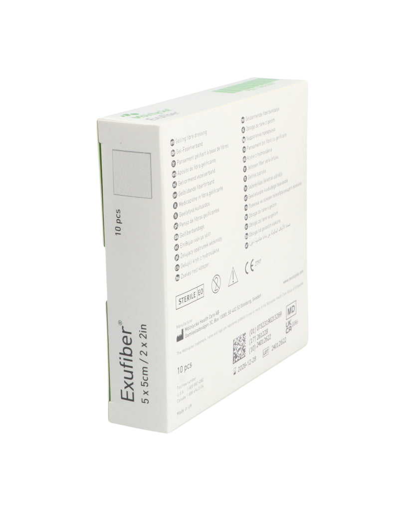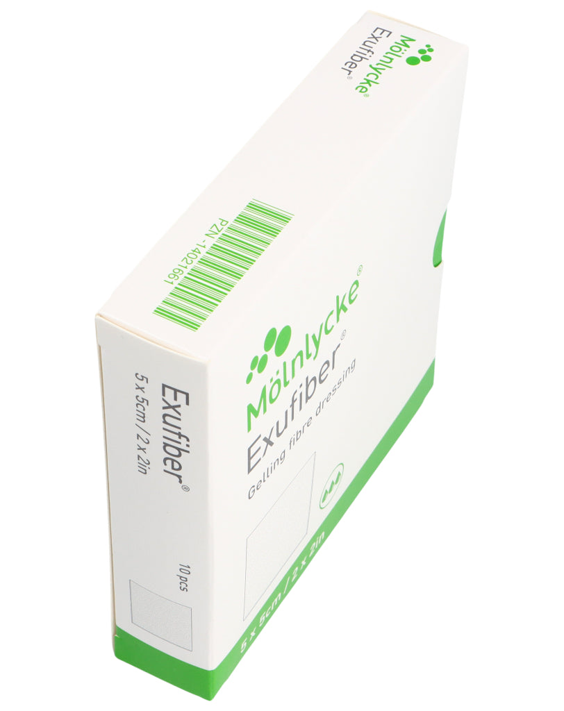 Exufiber kann bei vielen Arten von exsudierenden Wunden verwendet werden, z. B. bei Bein- und Fussgeschwüren, Dekubitus, Verbrennungen zweiten Grades, chirurgischen Wunden, Spenderstellen und malignen Wunden.