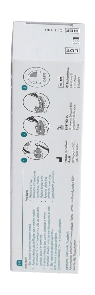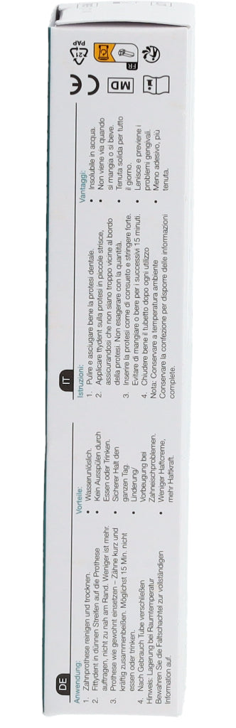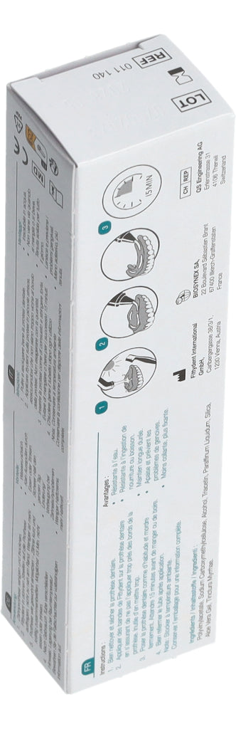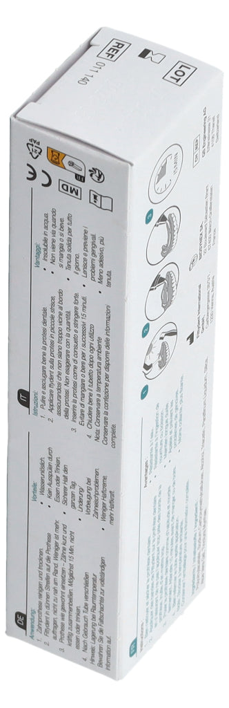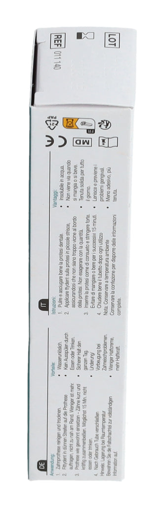 3. Prothese wie gewohnt einsetzen - Zähne kurz und kräftig zusammenbeißen. Möglichst 15 Min. nicht essen oder trinken.