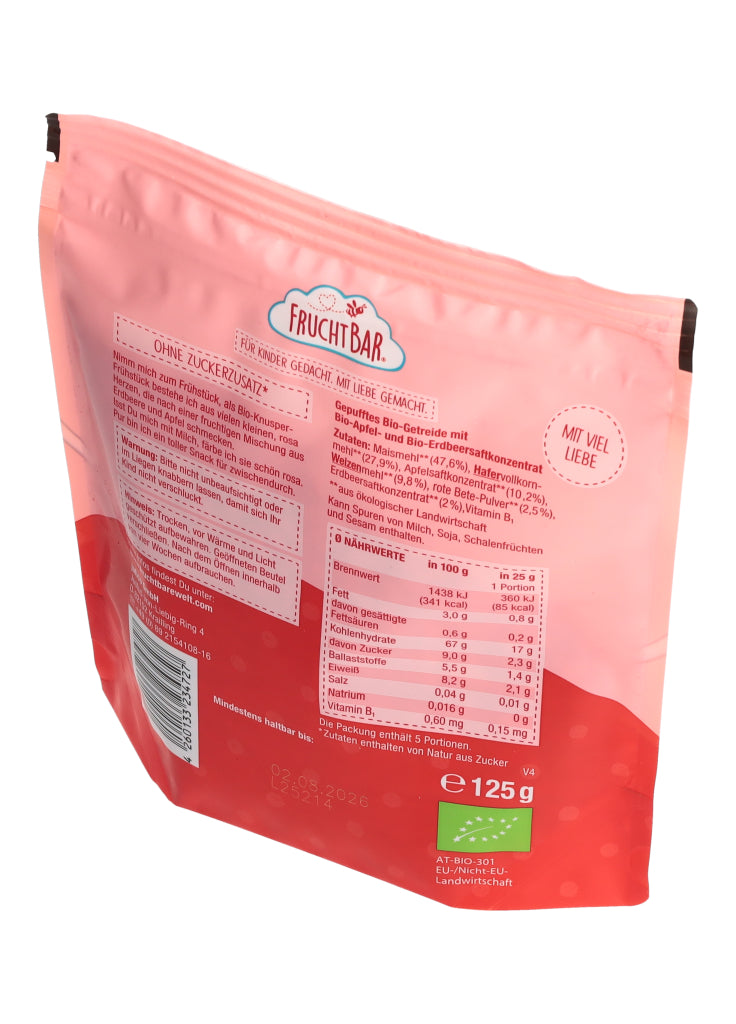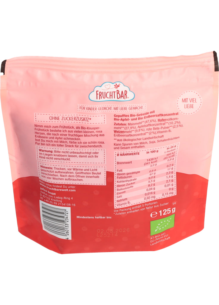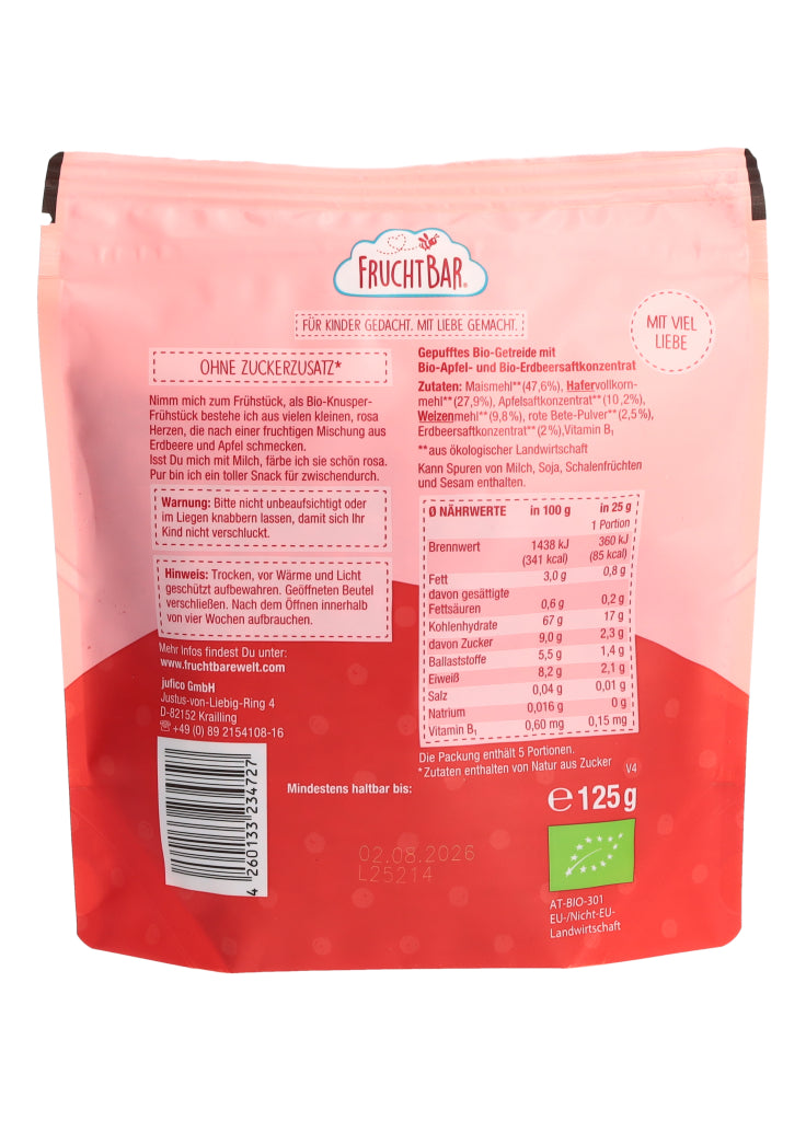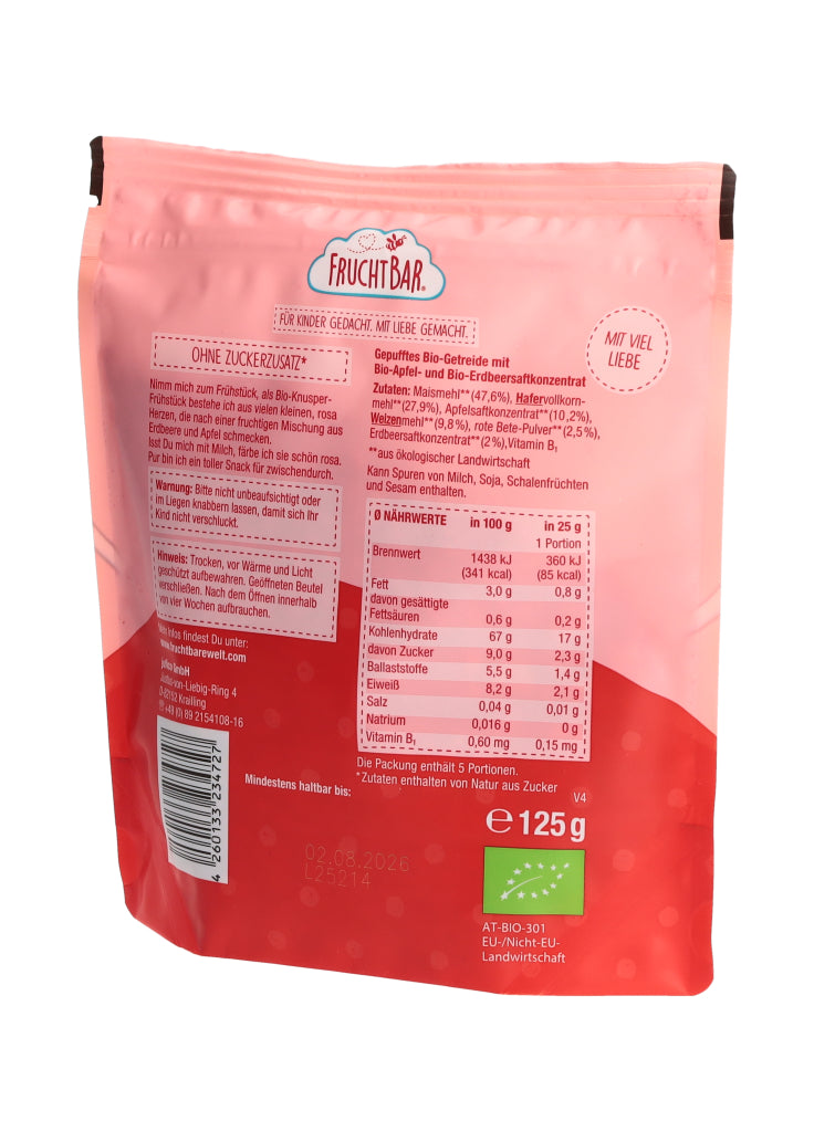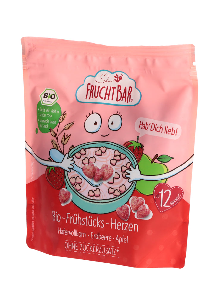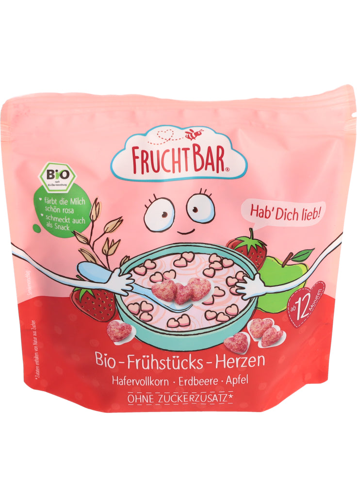 Fruchtbar Frühstücks-Herzen Bio Hab Dich lieb Hafervollkorn-Erdbeere-Traube-Apfel Btl 125 g