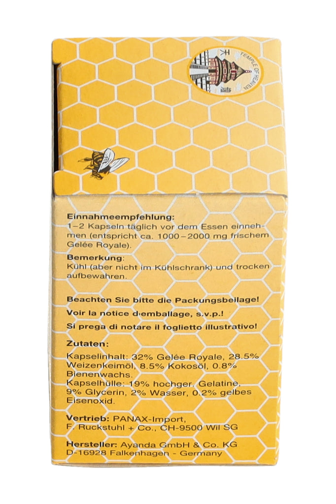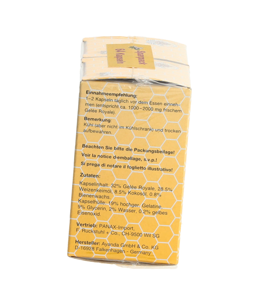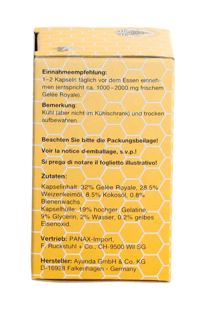 1-2 Kapseln täglich vor dem Essen einnehmen (entspricht ca. 1000-2000mg frischem Gelée Royale).