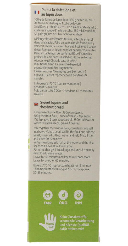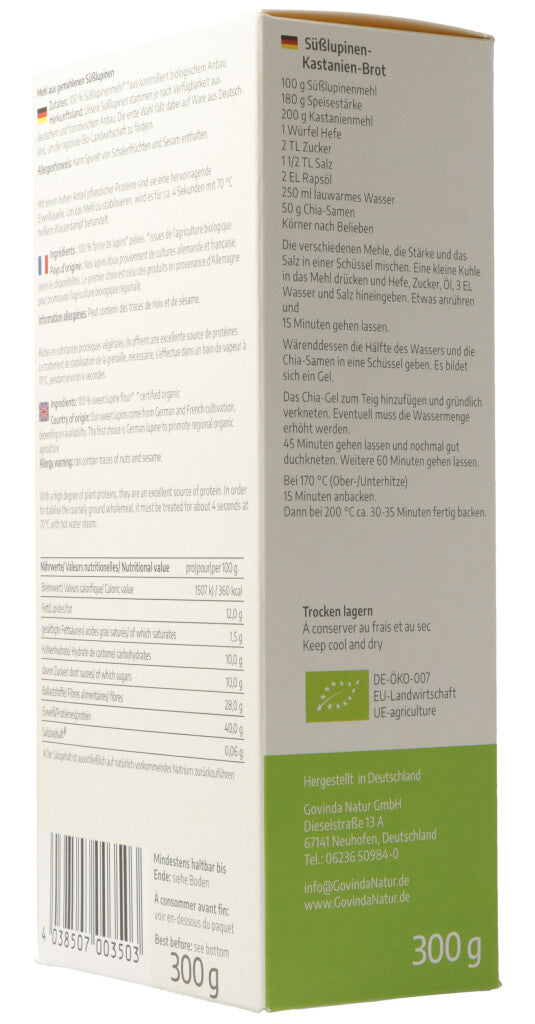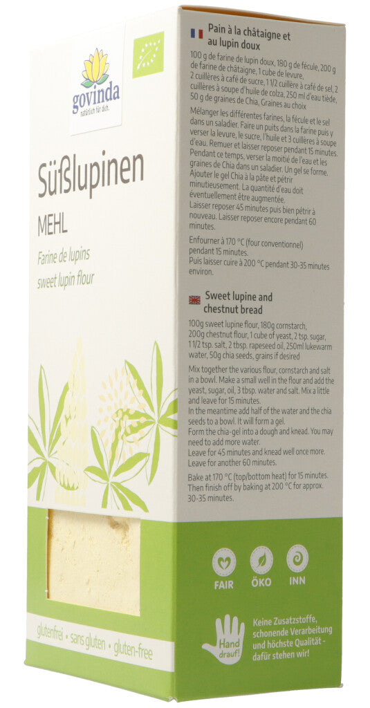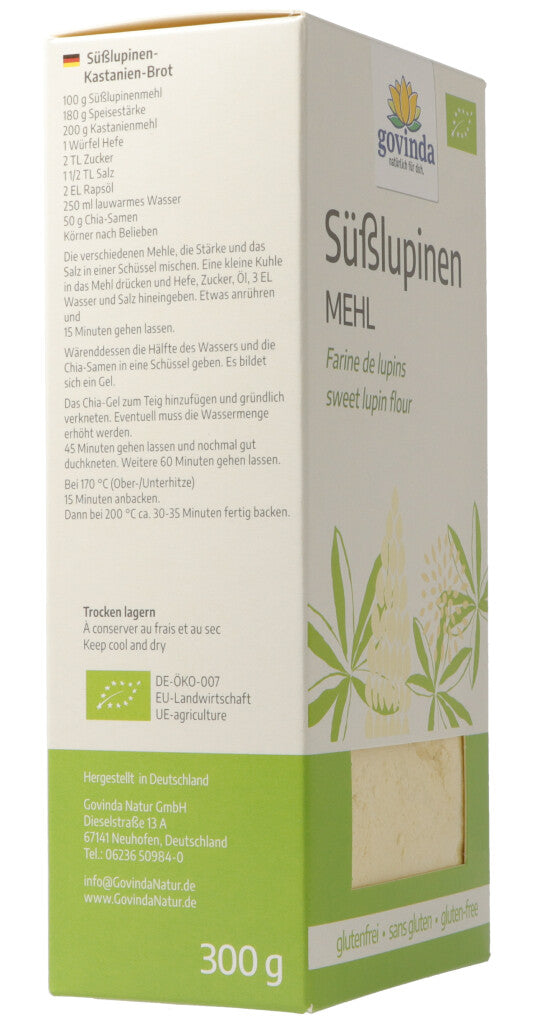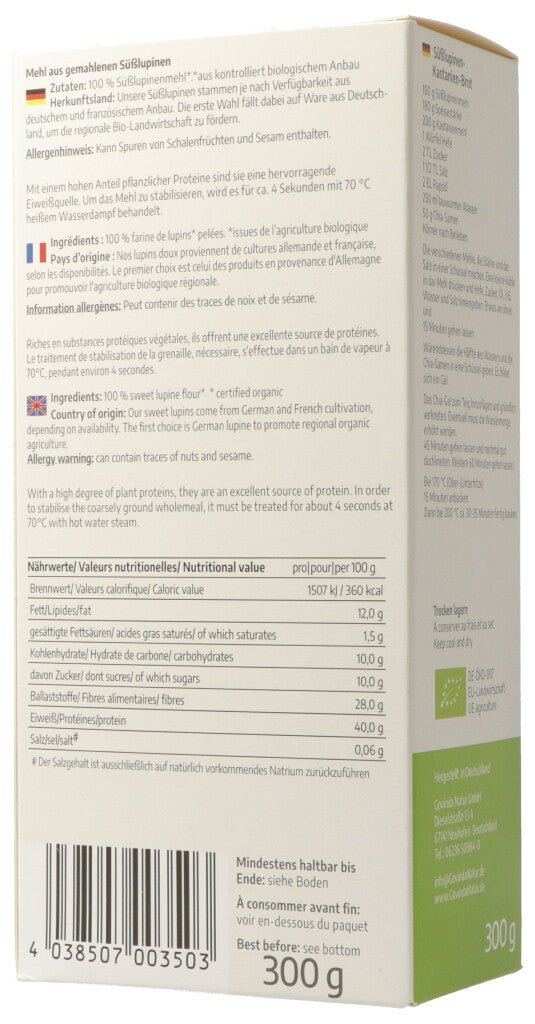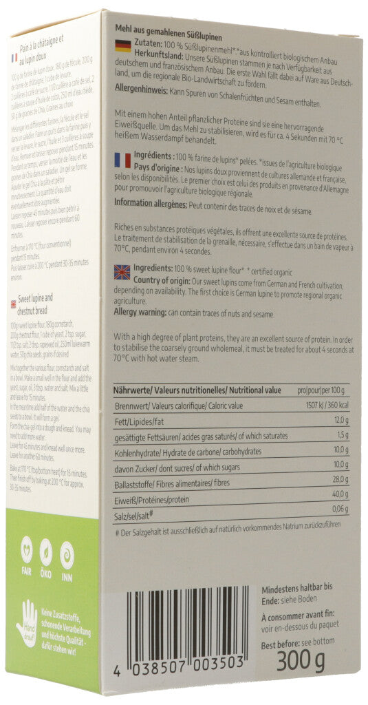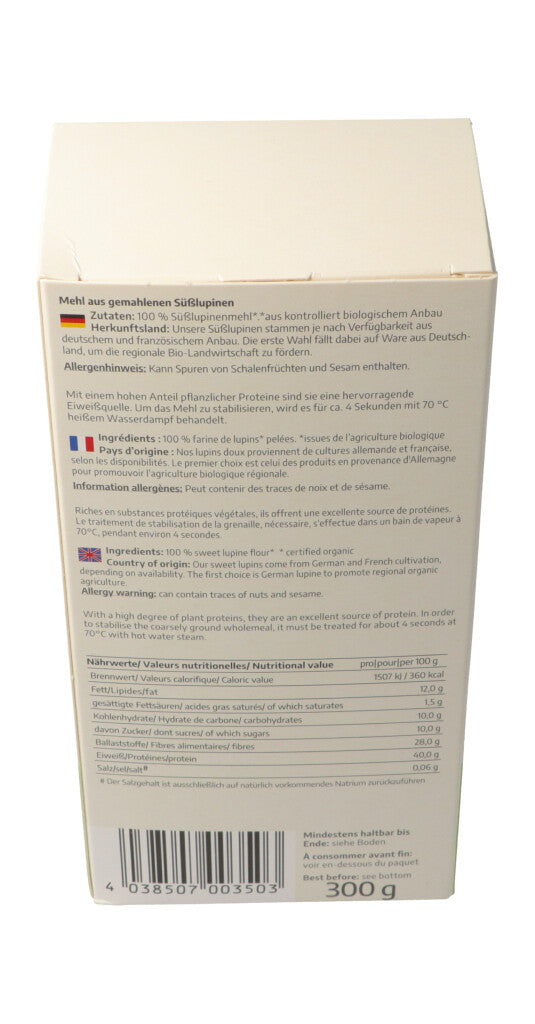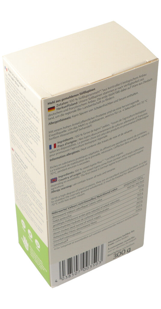 100 % SüßLUPINENmehl*. *Aus kontrolliert biologischem Anbau..