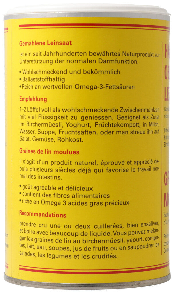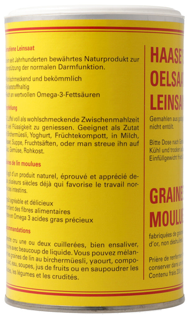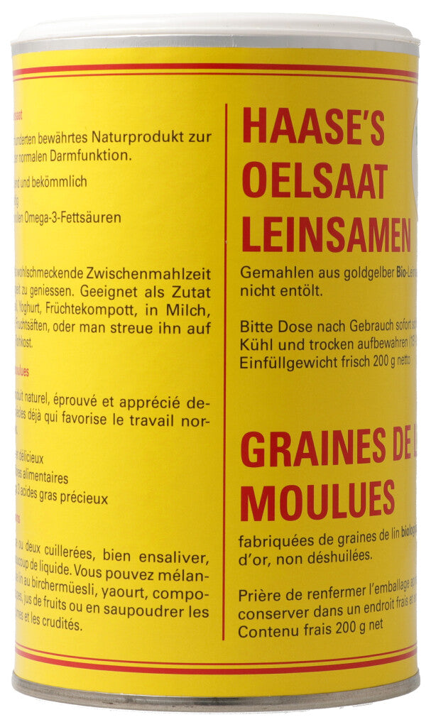 Haase’s Oelsaat Leinsamen beinhaltet gemahlene Leinsaat, welche ein seit Jahrhunderten bewährtes Naturprodukt zur Unterstützung der normalen Darmfunktion ist.