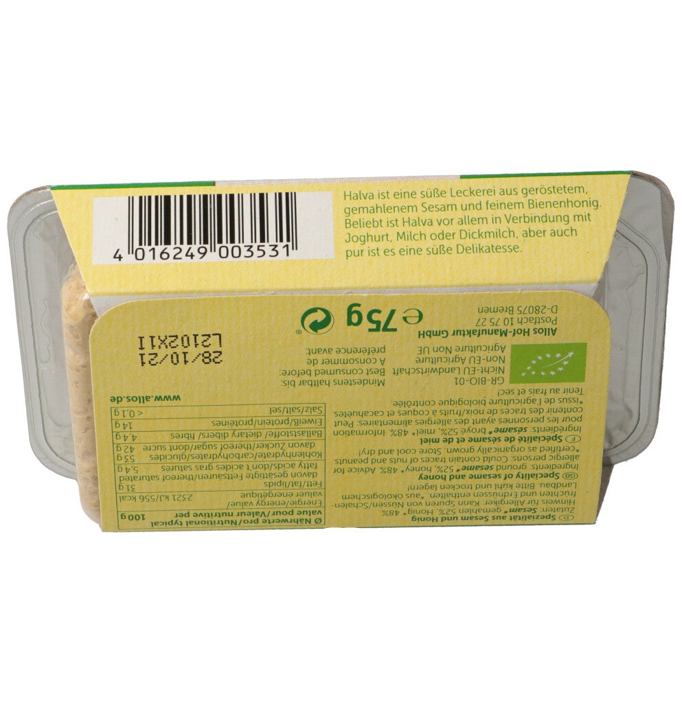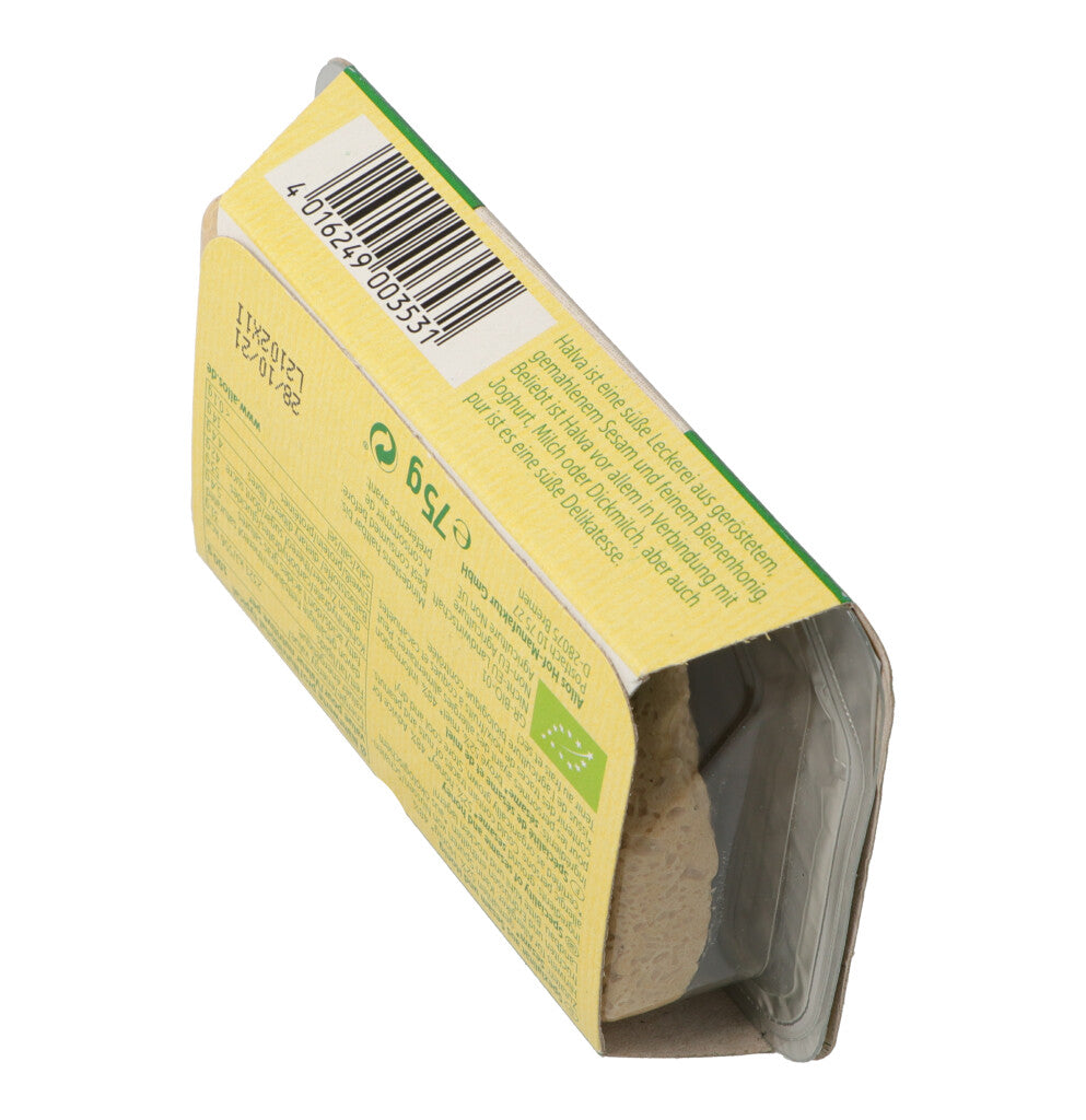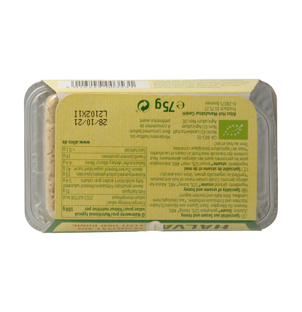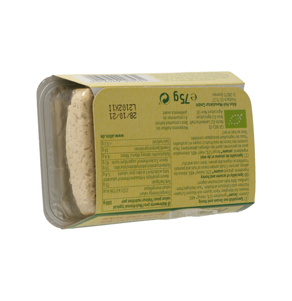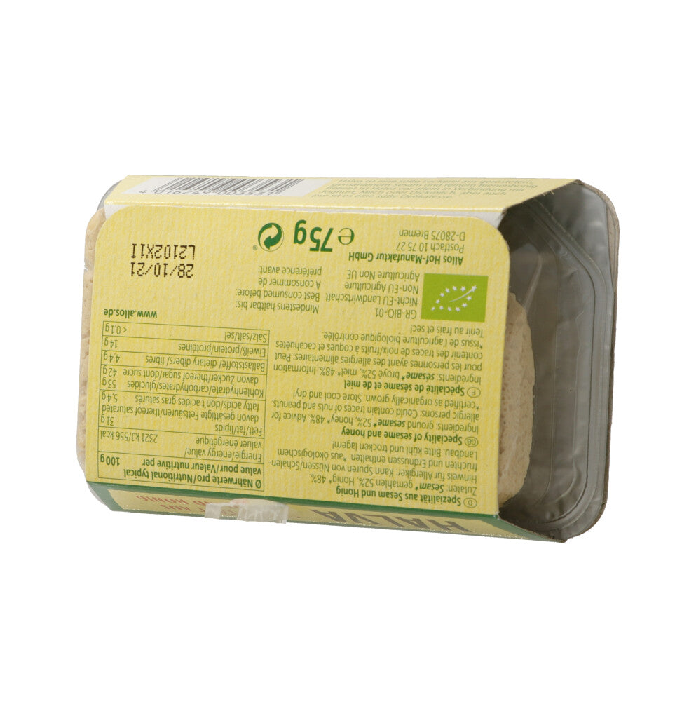 SESAM* gemahlen (52%), Honig* (48%). *Aus ökologischem Landbau..