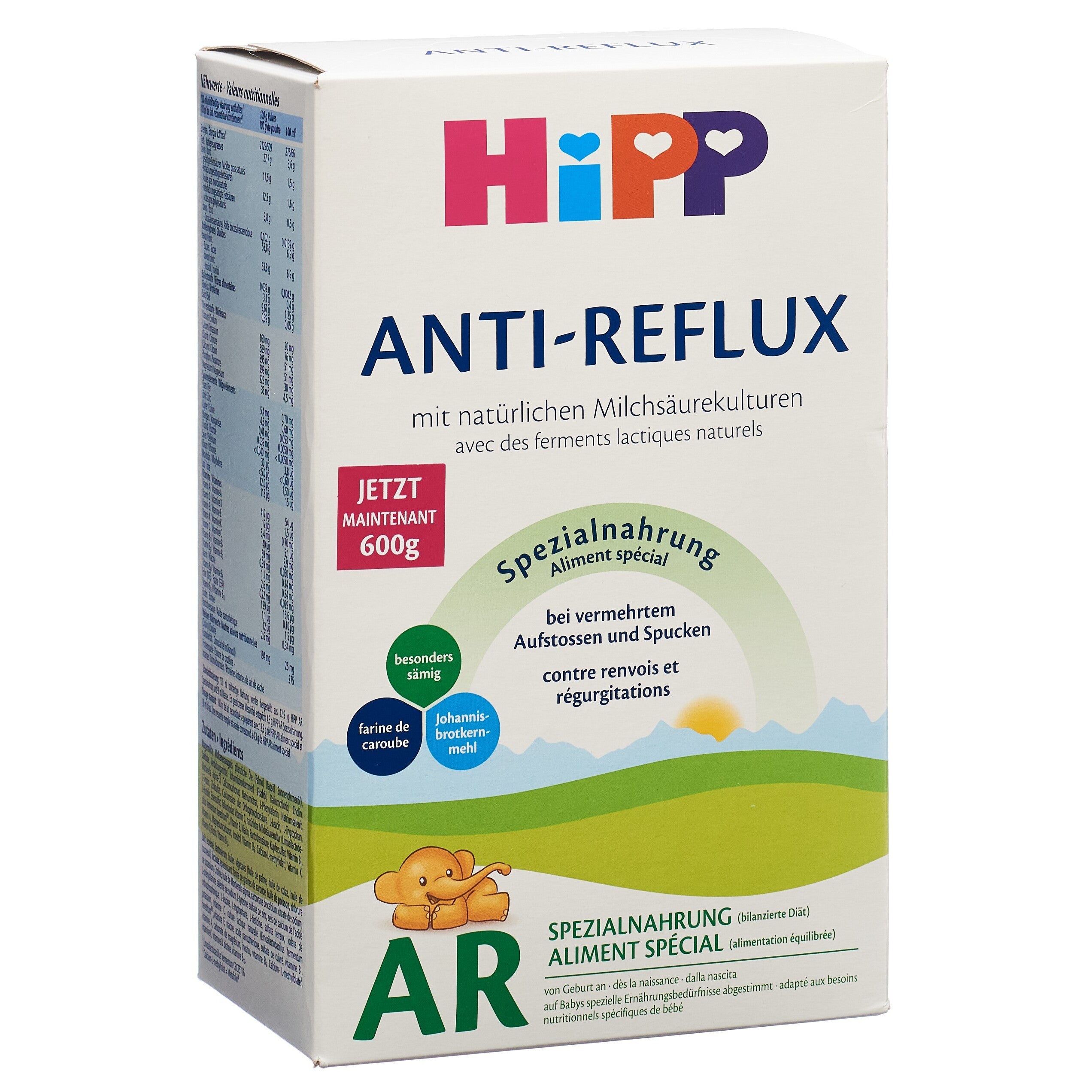 Besonders sämig. Mit Johannisbrotkernmehl. HiPP AR Spezialnahrung bei vermehrtem Aufstossen und Spucken. Wenn Babys nach der Mahlzeit mit dem Bäuerchen wieder etwas Nahrung aufstossen, ist das völlig normal. Einige Babys spucken jedoch schwallartig und deutlich mehr als gewöhnlich. Die HiPP AR Spezialnahrung hilft bei vermehrtem Aufstossen und Spucken. Durch Zusatz des natürlichen Quellstoffs Johannisbrotkernmehl wird HiPP AR Spezialnahrung besonders sämig und sorgt dafür, dass die Nahrung besser im Magen bleibt. Dadurch wird der Nahrungsrückfluss in die Speiseröhre (Reflux) und damit das Aufstossen und Spucken vermindert. AR-Nahrungen nur nach Rücksprache mit dem Kinderarzt geben.