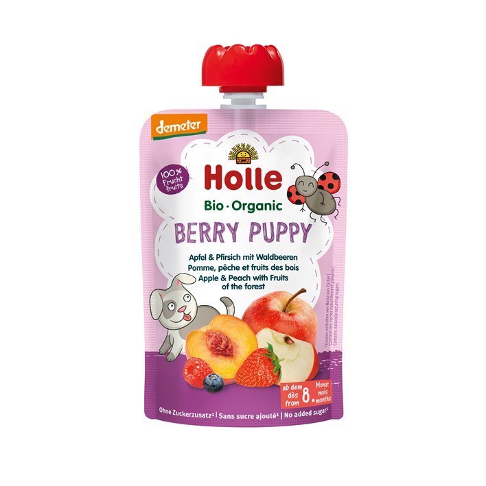 Holle Pouchy Berry Puppy Apfel & Pfirsich mit Waldbeeren 100 g
