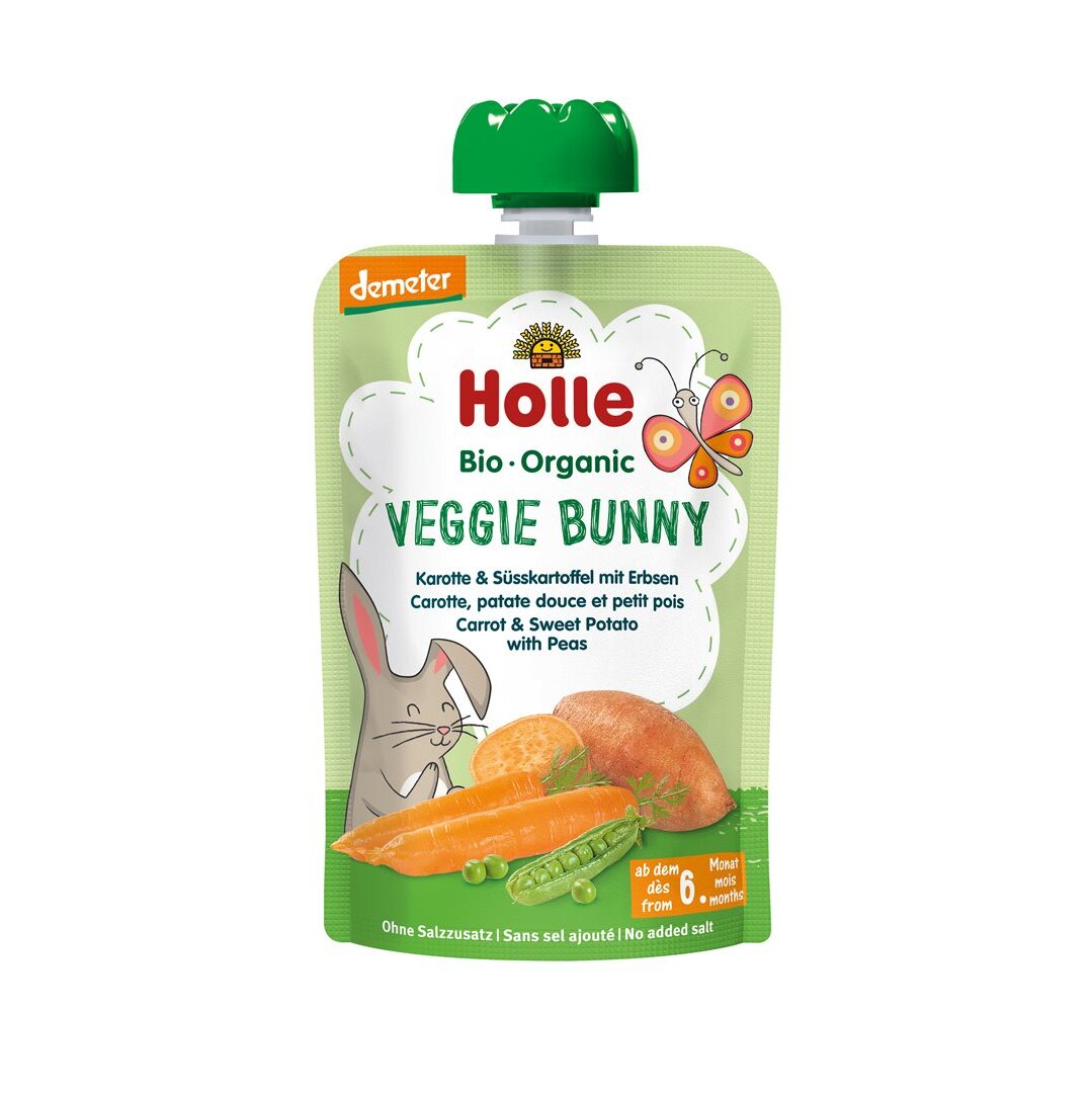 Holle Pouchy Veggie Bunny Karotte Süsskartoffel Erbsen 100 g
