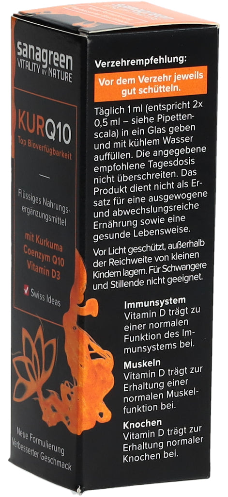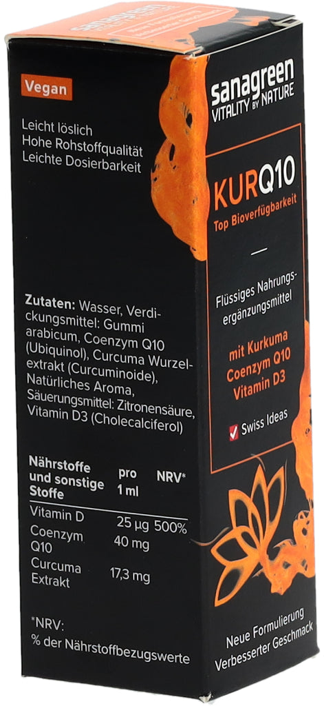 Für das KURQ10 werden hochwertige Rohstoffe eingesetzt. So hat der Kurkuma Extrakt einen Kurkuminoid Gehalt von 95%, das Coenzym Q10 eine Reinheit von >99% und das Vitamin D3 stammt aus einer pflanzlichen Quelle.