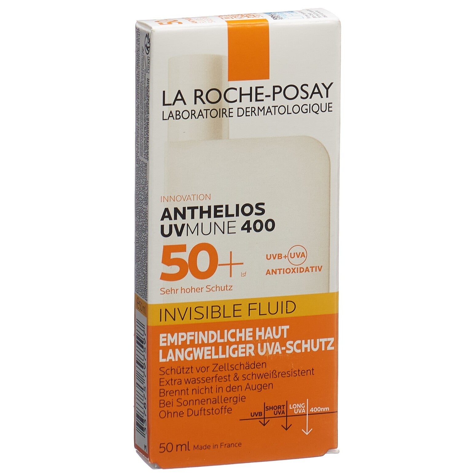 La Roche Posay Anthelios Transparentes Fluid UV 50+ bietet einen hohen Schutz mit breitem Spektrum gegen Schädigungen durch UVA-, UVB-, Infrarot-A-Strahlung und Umwelteinflüsse.