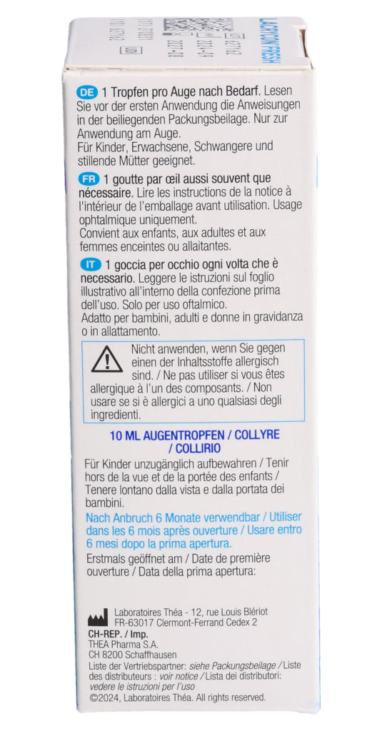 Lesen Sie vor der ersten Anwendung die Anweisungen in der beiliegenden Packungsbeilage. Nur zur Anwendung am Auge. Für Kinder unzugänglich aufbewahren. Nach Anbruch 6 Monate verwendbar. Nicht anwenden, wenn Sie gegen einen der Inhaltsstoffe allergisch sind.