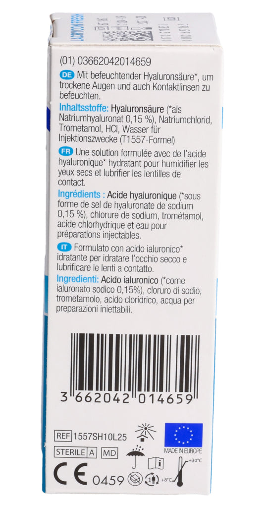 Mit befeuchtender Hyaluronsäure, um trockene Augen und auch Kontaktlinsen zu befeuchten. Für Kontaktlinsenträger geeignet. Für Kinder, Erwachsene, Schwangere und stillende Mütter geeignet. Enthält 300 Augentropfen.