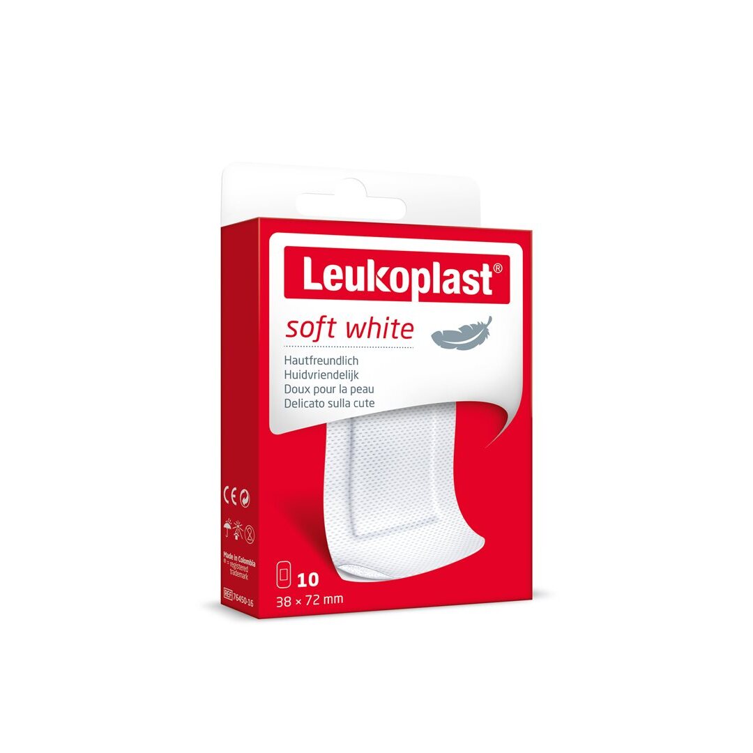 Leukoplast soft white ist ein atmungsaktiver Wundverband für kleinere Wunden, einschliesslich Schnitt- und Schürfwunden. Dieses weiche, flexible Produkt garantiert maximalen Tragekomfort, da es sich dem Körper anschmiegt und gleichzeitig eine zuverlässige Haftung und eine einfache Entfernung bietet. Das Wundpad ist besonders saugfähig und verklebt nicht mit der Wunde.