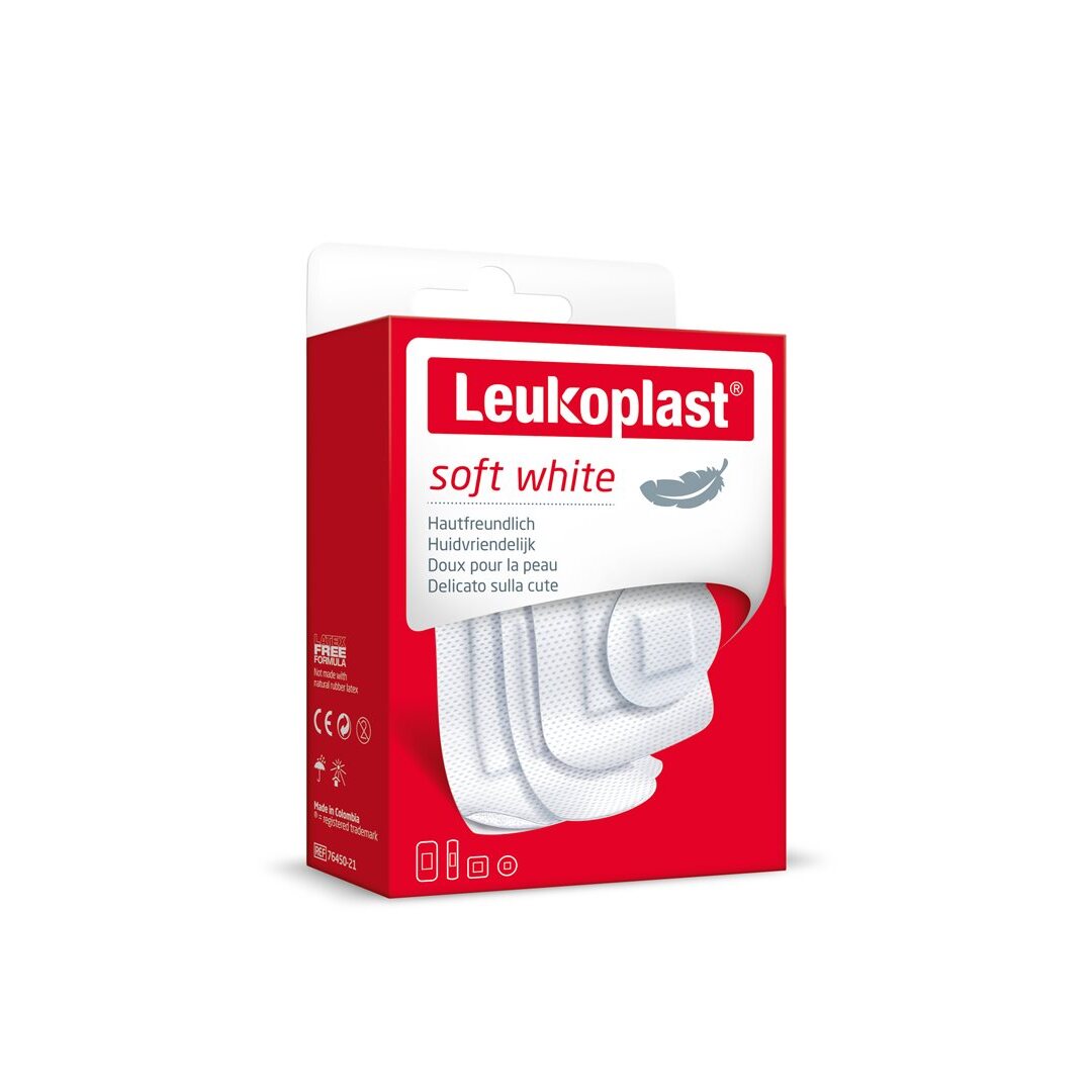 Leukoplast soft white ist ein atmungsaktiver Wundverband für kleinere Wunden, einschliesslich Schnitt- und Schürfwunden. Dieses weiche, flexible Produkt garantiert maximalen Tragekomfort, da es sich dem Körper anschmiegt und gleichzeitig eine zuverlässige Haftung und eine einfache Entfernung bietet. Das Wundpad ist besonders saugfähig und verklebt nicht mit der Wunde.