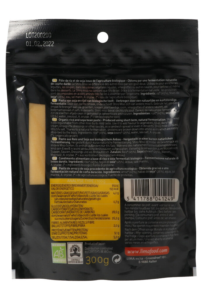 Reis* (45%), SOJAbohnen* (25%), Wasser, Meersalz, A. oryzae. (* = aus kontrolliert ökologischem Anbau.).