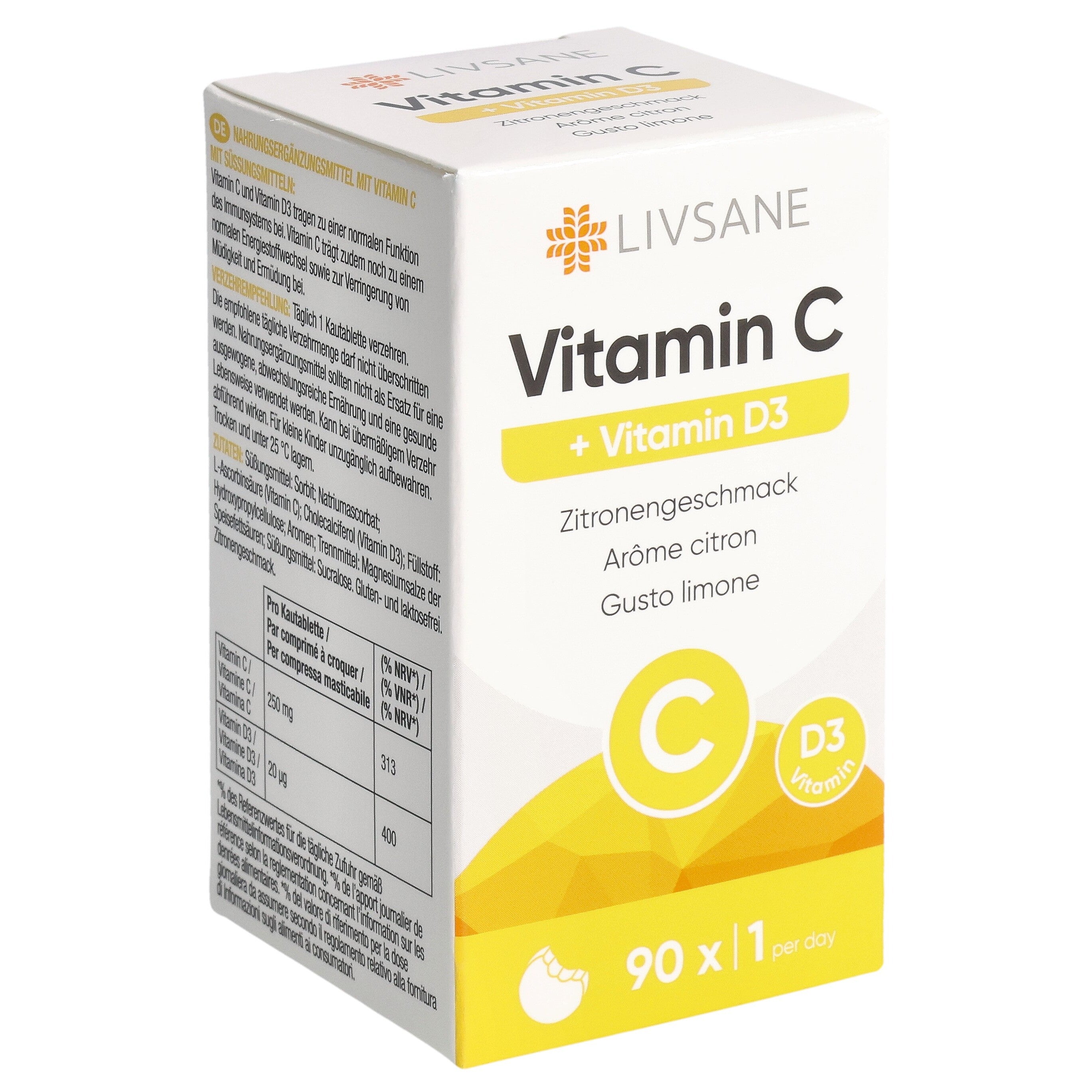 Livsane Vitamin C + D3 Kautabletten Ds 90 Stk
