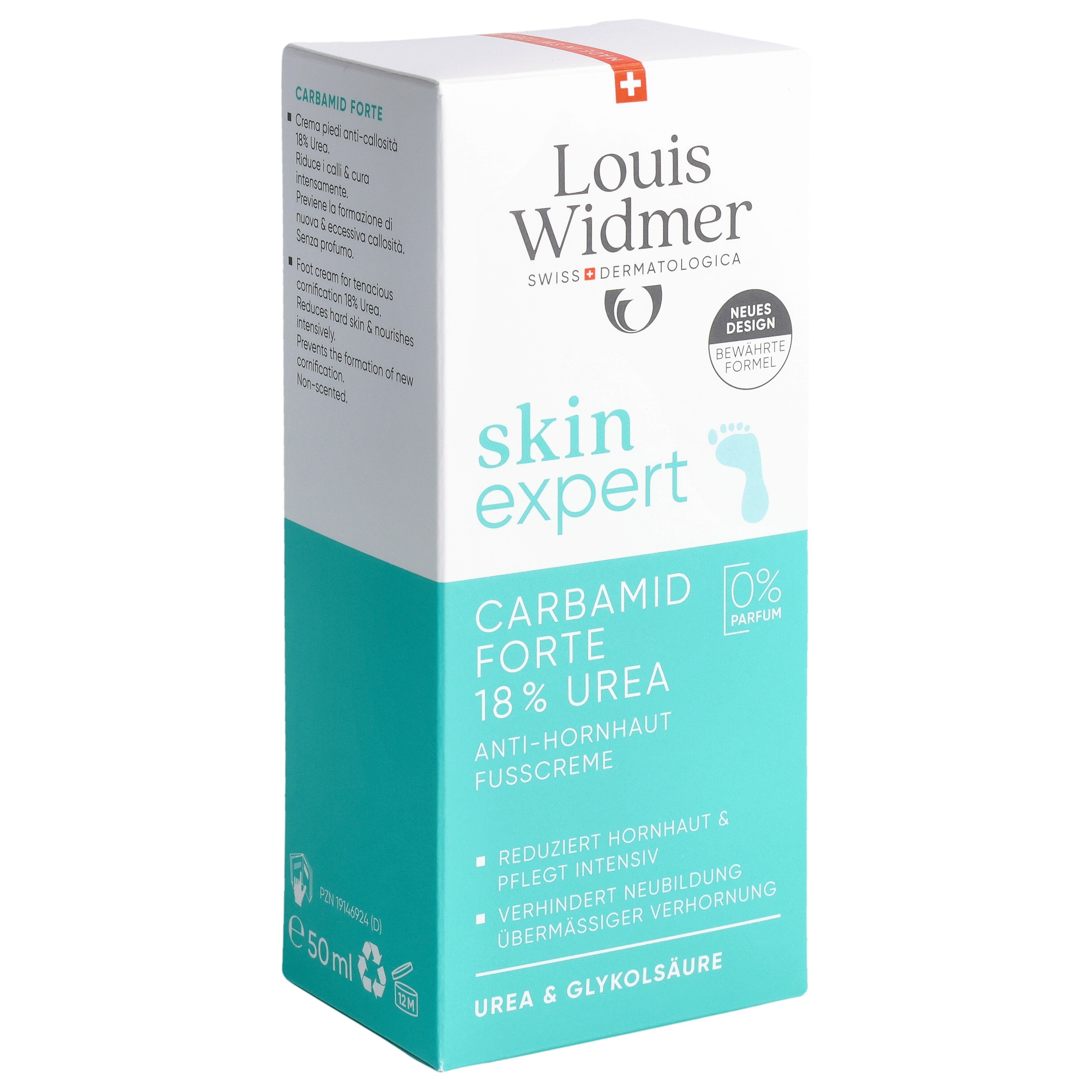 Carbamid Forte 18 % Urea Anti-Hornhaut Fusscreme reduziert wirksam die bestehende Hornhaut und vermindert Druckstellen. Bei regelmässiger Anwendung wird die Neubildung übermässiger Verhornung verhindert. Carbamid Forte Anti-Hornhaut Fusscreme mit 18 % Urea und Fruchtsäure schützt und pflegt die Füsse, versorgt sie intensiv mit Feuchtigkeit und wertvollen Pflegesubstanzen. Die Haut wird wieder glatt, weich, geschmeidig und nachhaltig vor dem Austrocknen geschützt. Carbamid Forte 18 % Urea Anti-Hornhaut Fusscreme zieht schnell ein und hinterlässt keinen unangenehmen Fettfilm auf der Haut. Die hohe Konzentration des Harnstoffs hat eine intensive keratolytische Wirkung und sorgt so für eine effiziente Reduktion der Hornhaut.