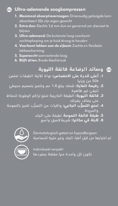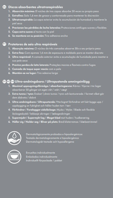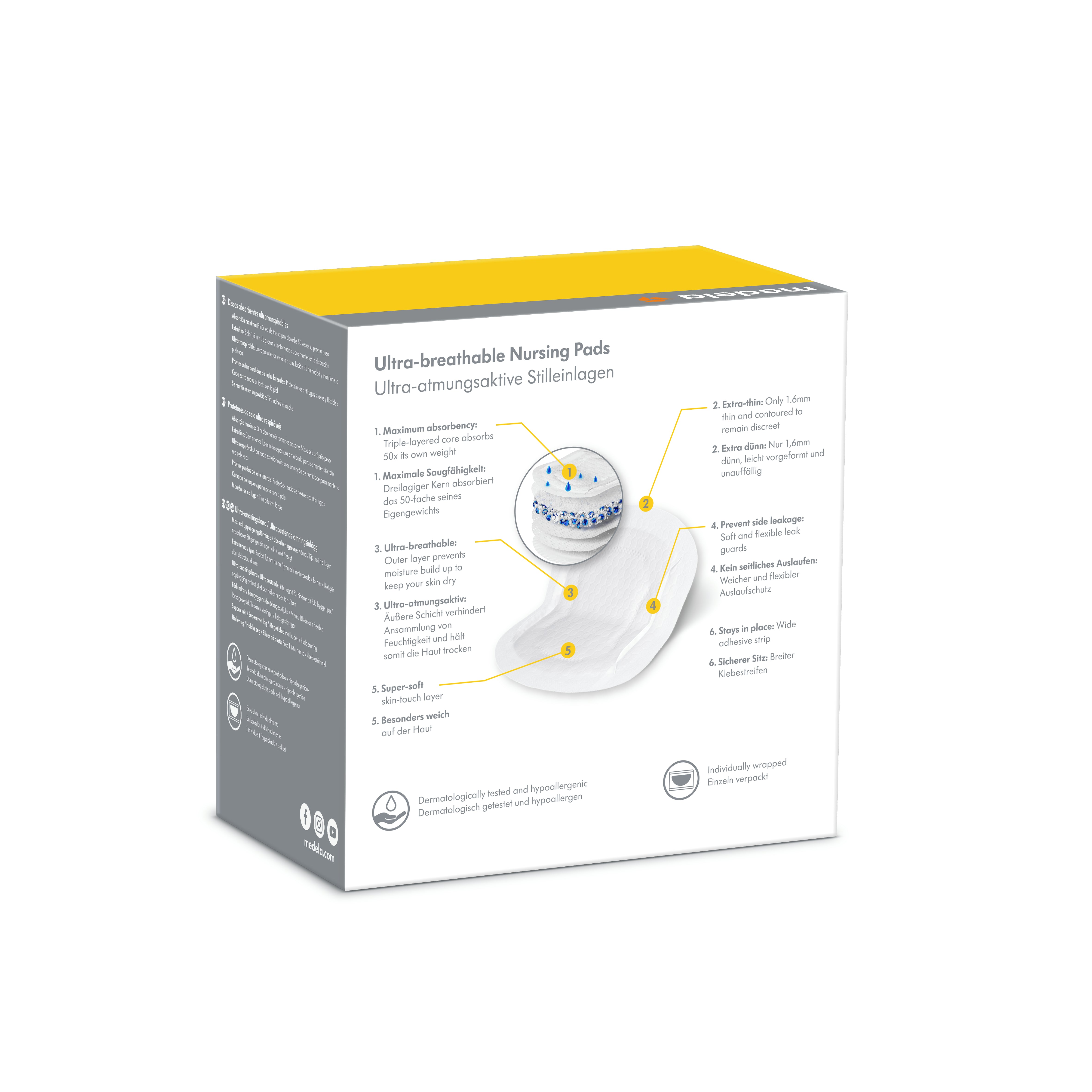 Die Safe & Dry Einweg-Stilleinlagen von Medela sind der ideale Begleiter während der Stillzeit. Dank des saugfähigen Polymer-Kerns wird die Flüssigkeit zuverlässig im Inneren eingeschlossen. Der flexible Auslaufschutz sorgt für eine optimale Anpassung an die Brust und verhindert dadurch ein seitliches Auslaufen. Die innovative ovale Form deckt den Bereich unter der Brustwarze besonders gut ab, ohne sich dabei unter der Kleidung abzuzeichnen. Mithilfe der weichen und hypoallergenen Innenseite sorgt die Einlage nicht nur für ein trockenes, sondern auch für ein angenehmes Hautgefühl.