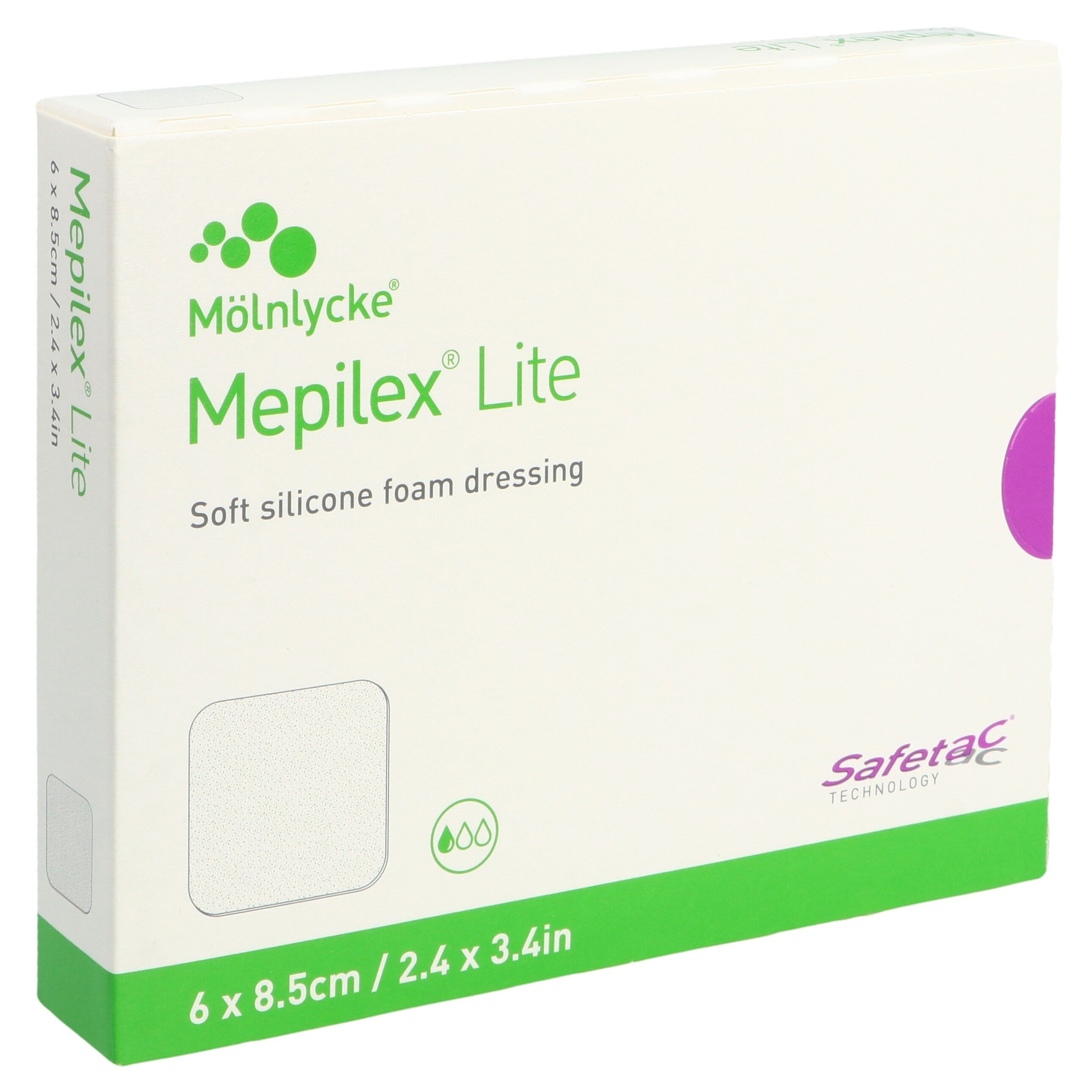 Anwendungsgebiete: Mepilex Lite ist für eine Vielzahl von nicht bis leicht exsudierenden Wunden geeignet, wie z.B. Bein- und Fussgeschwüre, Druckgeschwüre, partielle Verbrennungen, strahleninduzierte Hautreaktionen oder Epidermolysis Bullosa. Ausserdem lässt sich Mepilex Lite als Schutz für gefährdete und fragile Haut einsetzen. Mepilex Lite kann unter Kompression und in Kombination mit Gelen verwendet werden.