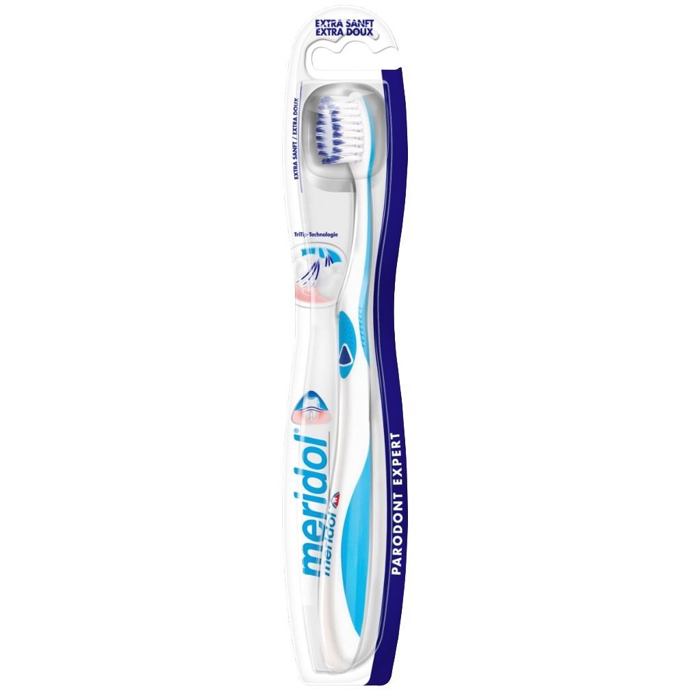 Meridol Parodont Expert Zahnbürste besteht aus mikrofeinen TriTip-Borsten, welche eine gründliche Reinigung und sanfte Plaque-Entfernung mit weniger Druck ermöglichen.