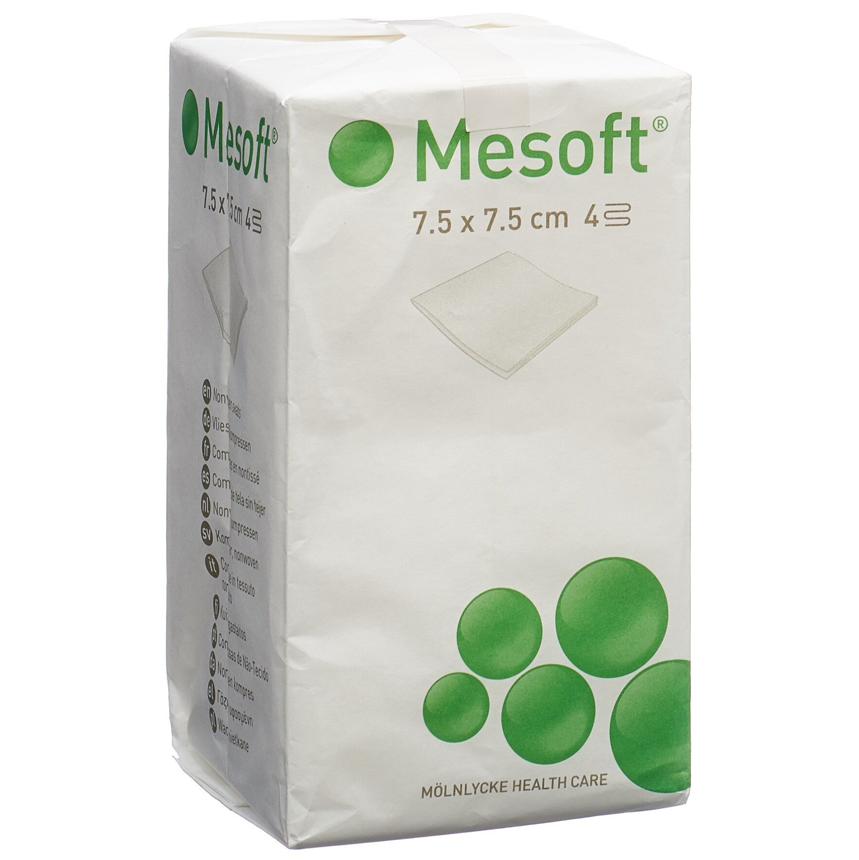 Mesoft wurde für verschiedene Anwendungen entwickelt – einschliesslich Absorbtion, Schutz, Auffüllung und Desinfektion. Im Gegensatz zu Baumwollgaze fühlen sie sich weich an und sind formbeständig, auch im Nasszustand.