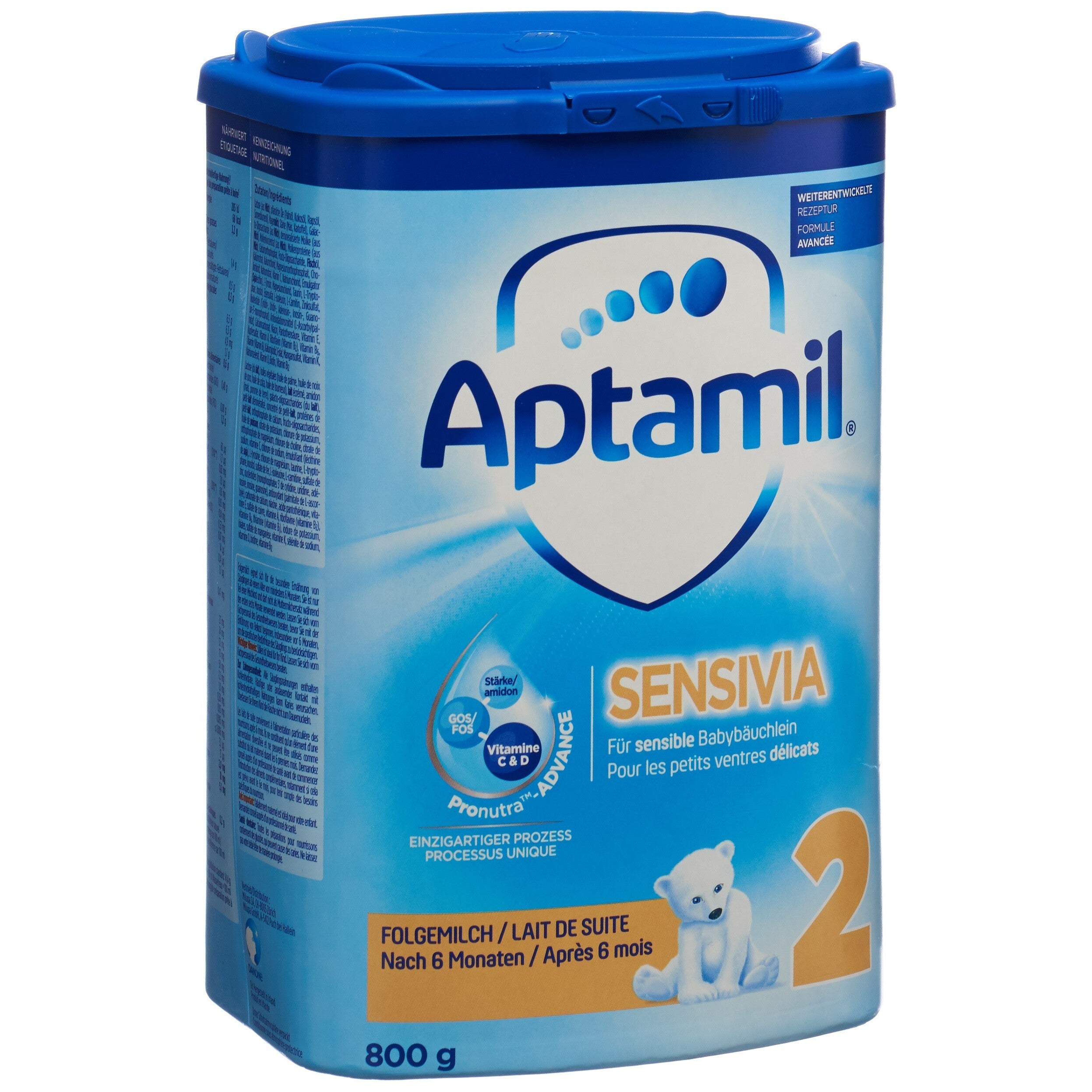 Aptamil Sensivia 2 Folgemilch - Unsere Sanfte. Unsere schonend hergestellte Formel für kleine Babybäuchlein. Aptamil Sensivia 2 Folgemilch nach 6 Monaten, 800g als Pulver - Basierend auf 50 Jahren Muttermilchforschung wurde unsere besondere Nährstoffkombination für sensible Babybäuchlein entwickelt. Sie ist hergestellt mit unserem schonendem Lactofidus ® Prozess und enthält Stärke für eine sämige Milch. Natürlich mit unserer besonderen Aptamil-Rezeptur mit Nutri-Fibers GOS/FOS und allen wichtigen Nährstoffen, wie u.a. Vitamin C & D*. *Gesetzlich für Folgenahrung vorgeschrieben. Wichtiger Hinweis: Stillen ist ideal für Ihr Kind. Folgemilch eignet sich nur für Kinder ab 6 Monaten. Lassen Sie sich beraten. Eure Milchmomente sind so individuell wie ihr. Jedes Baby, jede Familie und wie sie das Elternsein erlebt, all das ist einzigartig. Es gibt keine «Einheitslösung» und keine «Formel». Jede Familie hat eine andere Geschichte. Inspiriert von 50 Jahren Muttermilchforschung bietet Aptamil daher hochwertige Folgemilchen an, die auf eure individuellen Bedürfnisse abgestimmt sind. Darüber hinaus ist unser Aptaclub Expertenteam immer für euch da, so wie ihr für euer Baby. Mit individueller Beratung rund um Schwangerschaft, Geburt und Baby – kostenlos und ohne Anmeldung. Wir freuen uns auf eure Kontaktaufnahme (Telefon: 0800 55 06 09 | Mail: info@aptaclub.ch). Aptamil - Euer Leben. Unsere Wissenschaft.