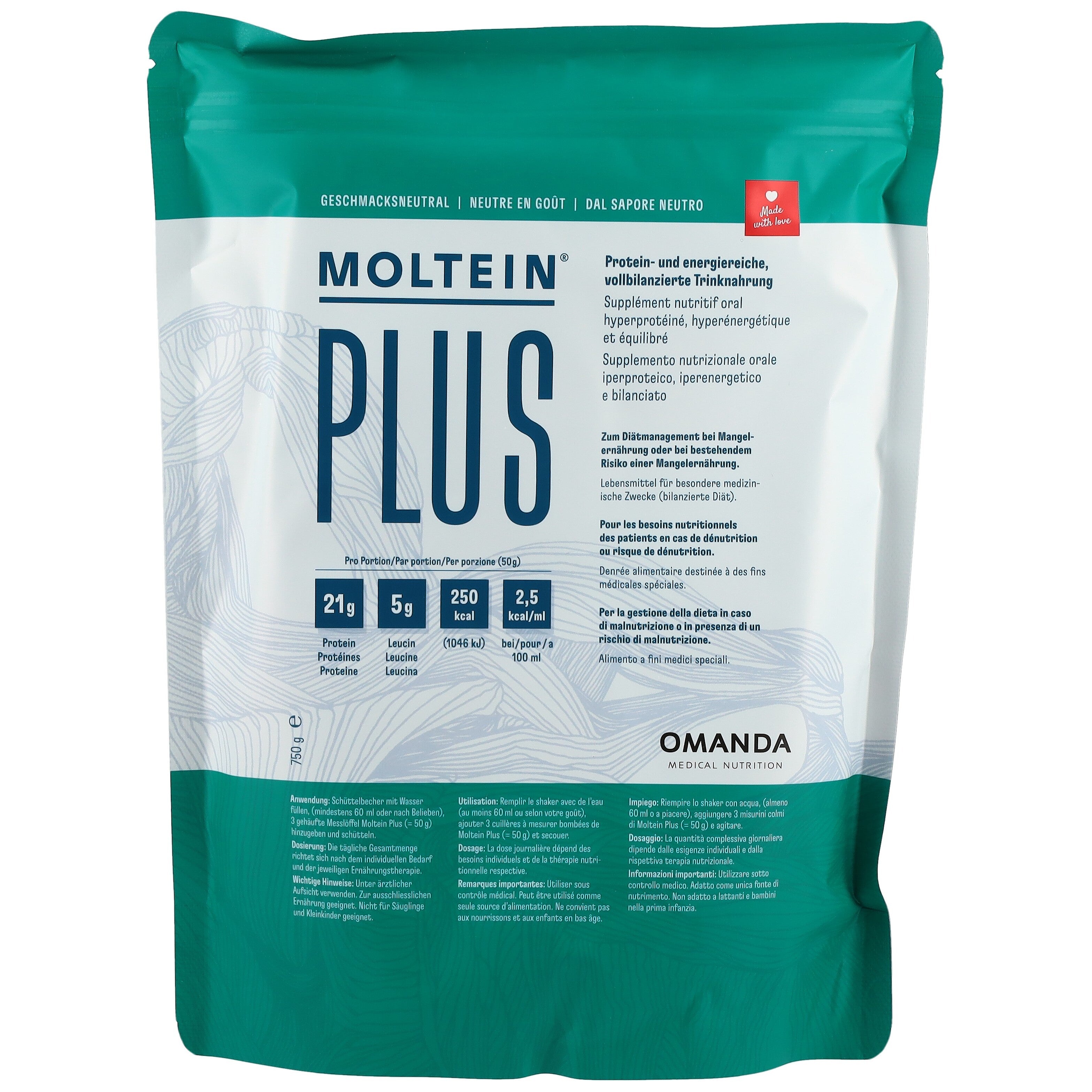 Moltein PLUS ist ein Lebensmittel für besondere medizinische Zwecke zum Diätmanagement bei Mangelernährung oder bei bestehendem Risiko einer Mangelernährung.