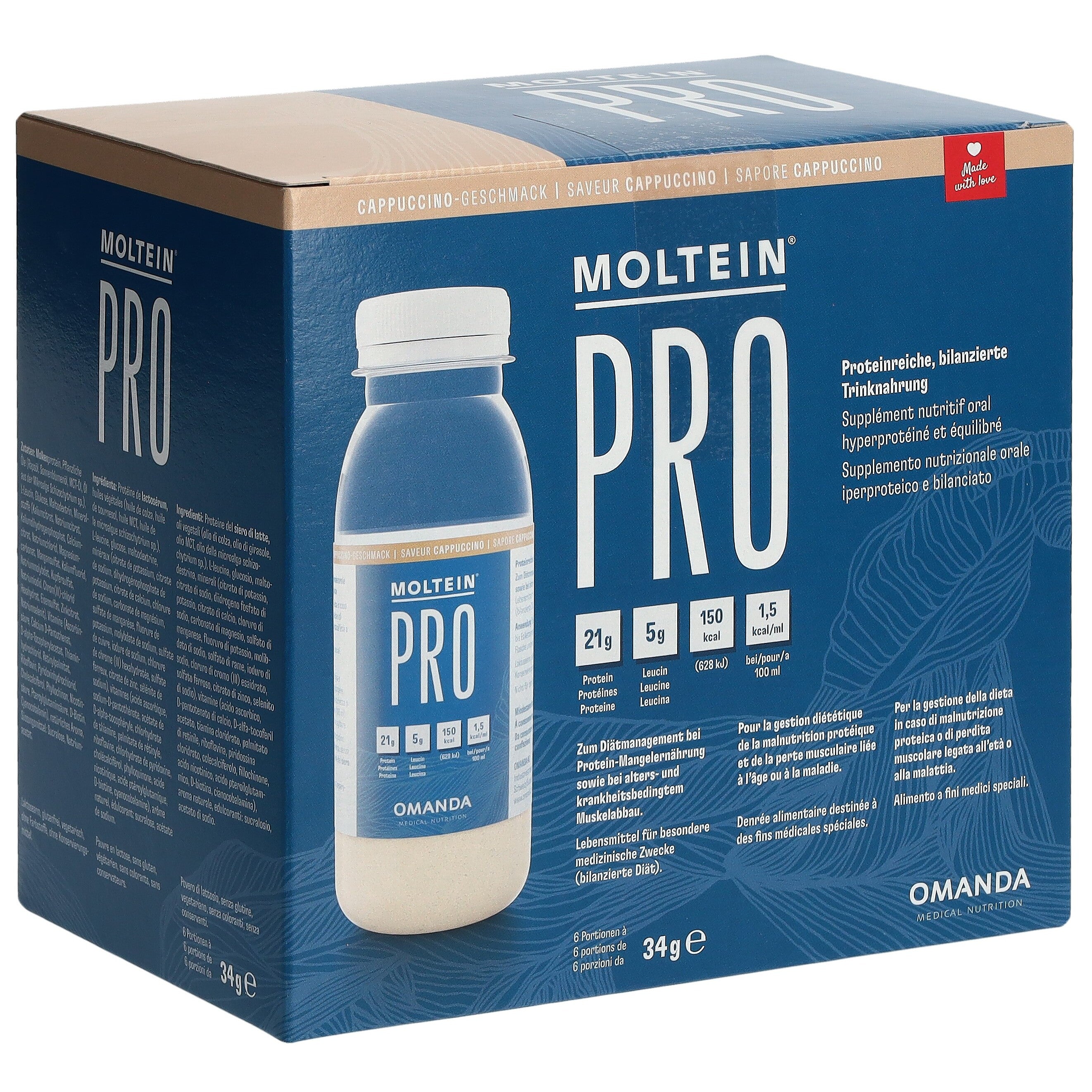 Moltein PRO ist eine proteinreiche, kalorische, bilanzierte Trinknahrung.