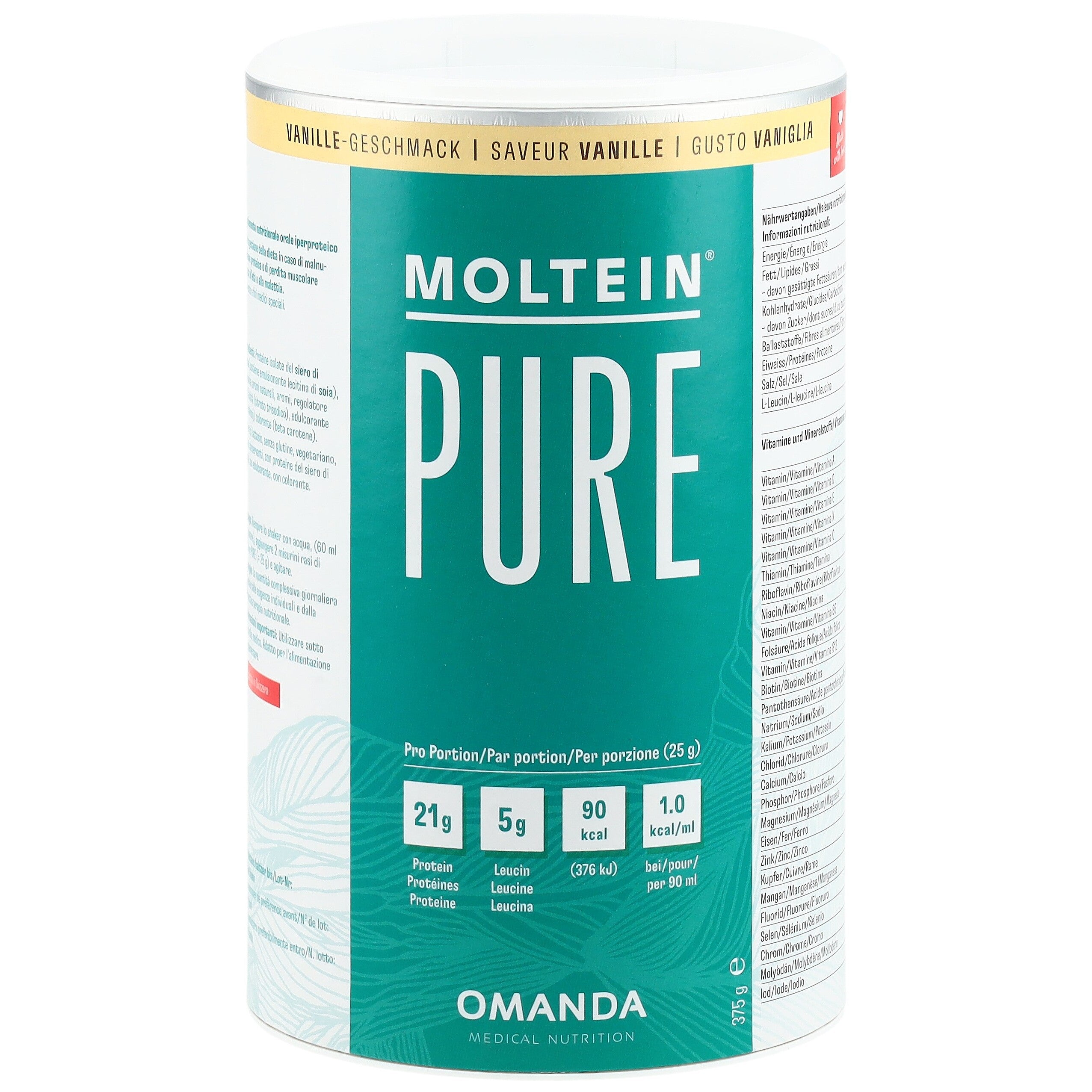 Schüttelbecher mit Wasser füllen, (60ml oder nach Belieben), 2 gestrichene Messlöffel Moltein PURE (=25g) hinzugeben und schütteln. Die täglich Gesamtmenge richtet sich nach dem individuellen Bedarf und der jeweiligen Ernhärungstherapie.