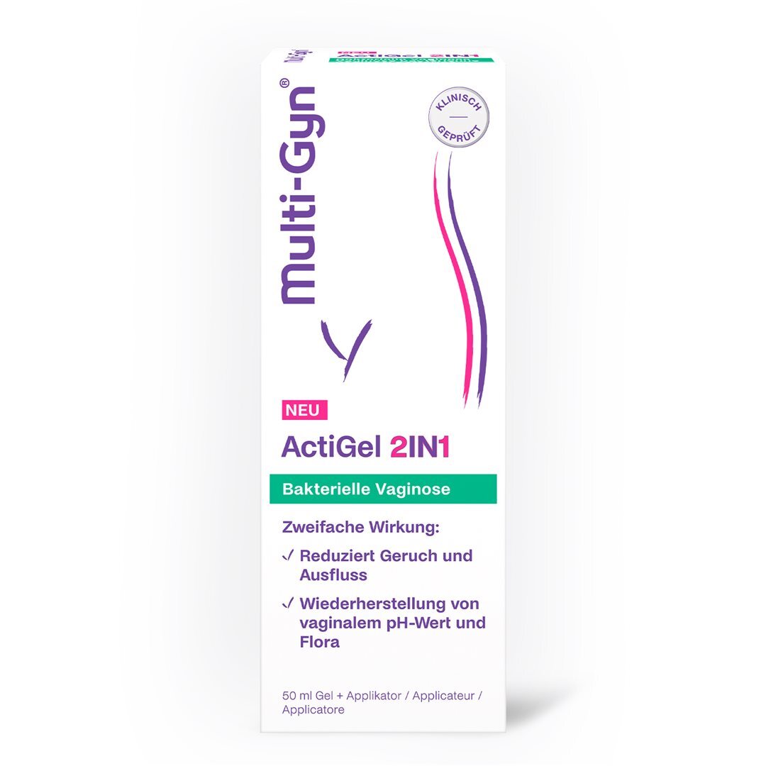 Multi-Gyn ActiGel 2in1 bietet Ihnen eine doppelt wirksame, klinisch geprüfte Lösung für die Behandlung von BV (bakteriellen Vaginose). Darüber hinaus wird der optimale pH-Wert wieder hergestellt – für eine gesunde Vaginalflora.