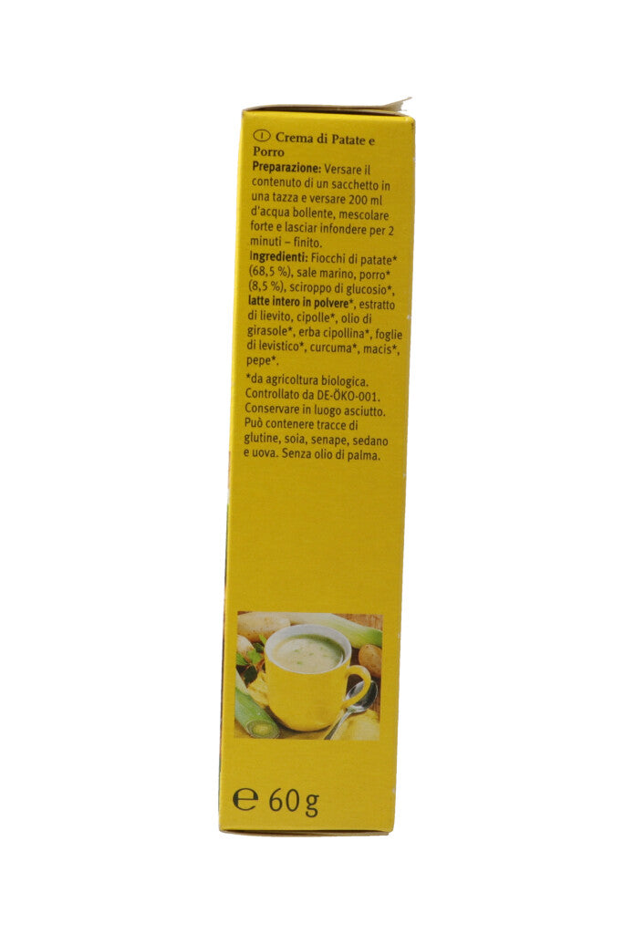 Kartoffelflocken* (68,5 %), Meersalz, Lauch* (8,5 %), Glukosesirup*, Vollmilchpulver*, Hefeextrakt, Zwiebeln*, Sonnenblumenöl*, Schnittlauch*, Liebstöckelblätter*, Curcuma*, Macis*, Pfeffer*. *Aus kontrolliert ökologischer Landwirtschaft..