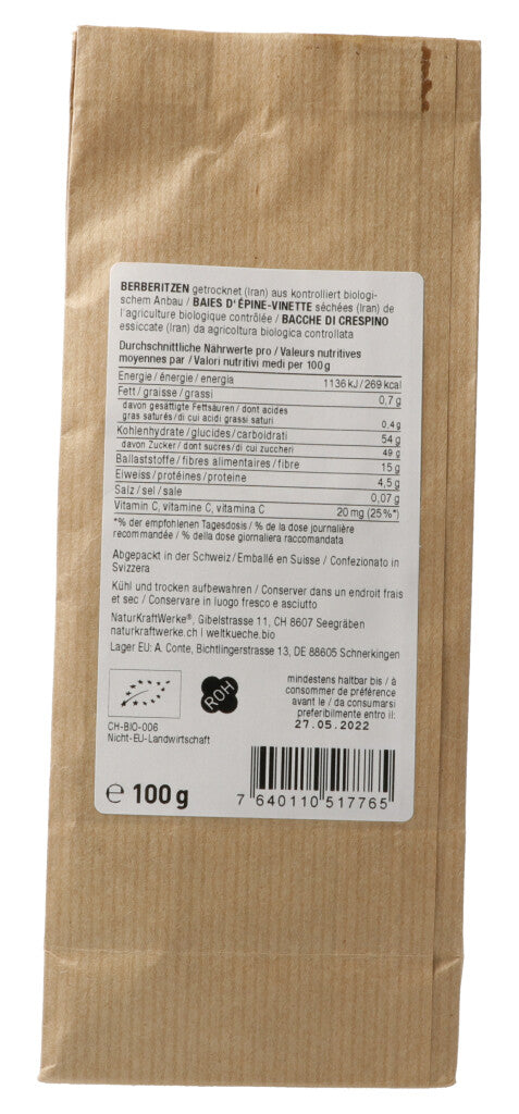 NaturKraftWerke Berberitzen Beeren getrocknet Bio/kbA 100 g