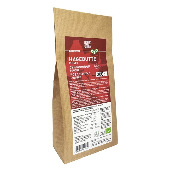 Das NaturKraftWerke Hagebuttenpulver ist 100 % Bio-Hagebutte, mit Fruchtschalen und Kernen. Aus fairer und partnerschaftlicher Zusammenarbeit.