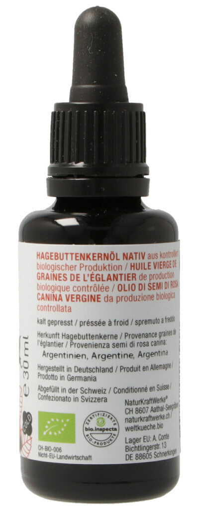 Hagebuttenkernöl nativ aus kontrolliert biologischer Produktion..