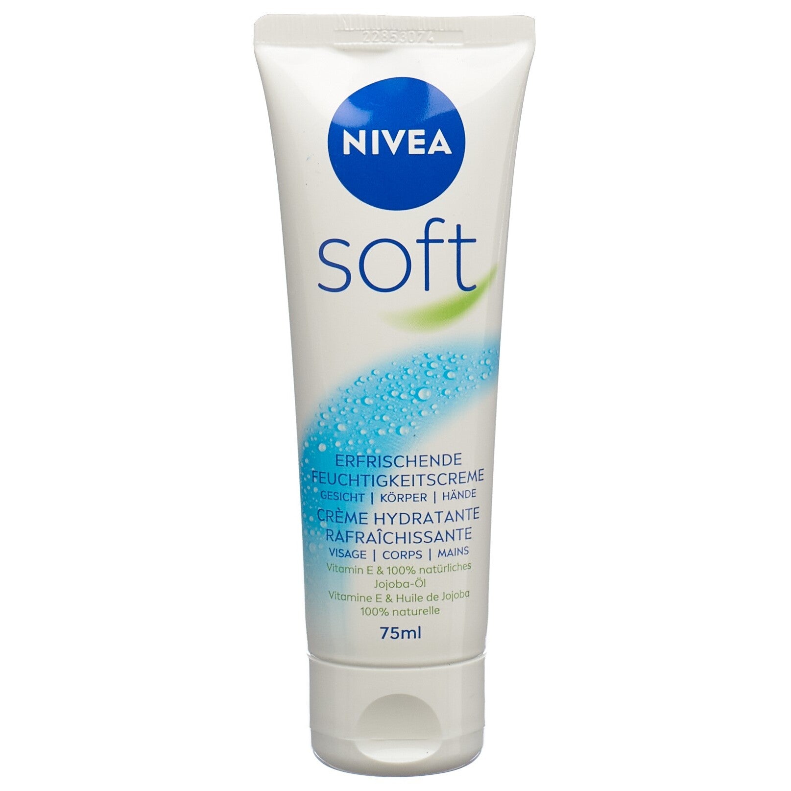 Die Nivea Soft Feuchtigkeitscreme für Gesicht, Körper und Hände sorgt für eine geschmeidig weiche Haut. Sie zieht schnell ein und erfrischt die Haut.