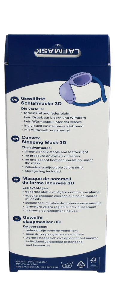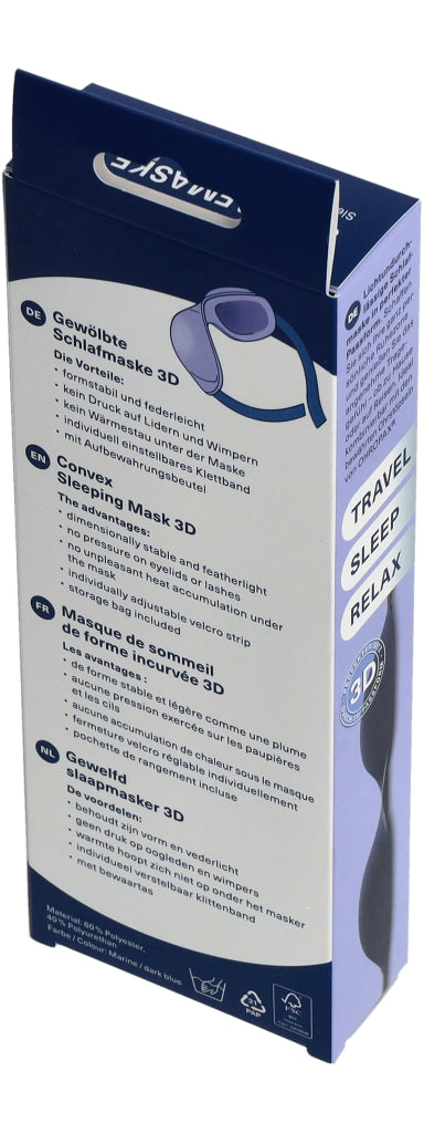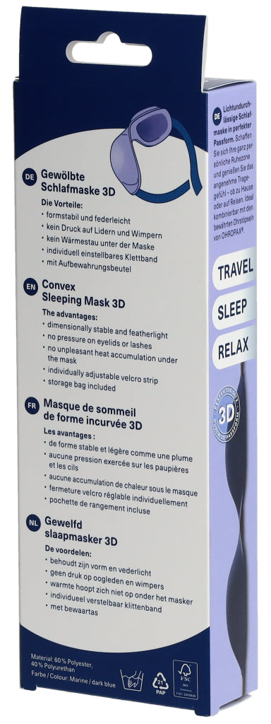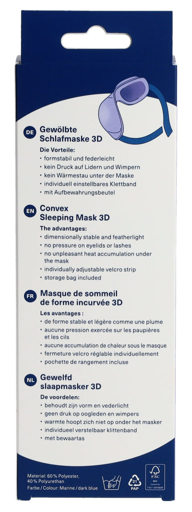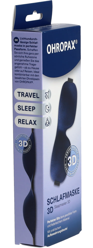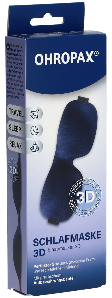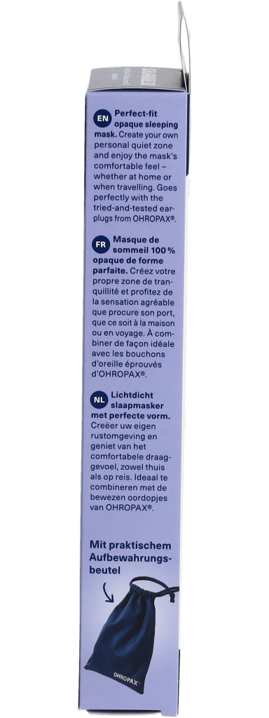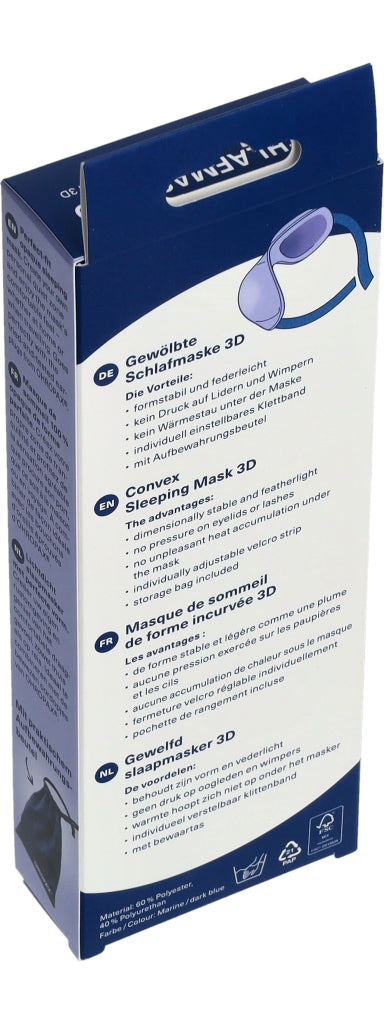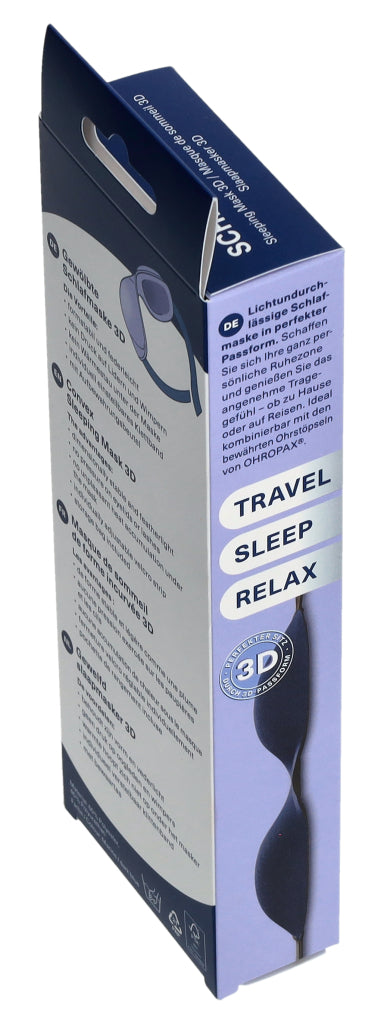 Die OHROPAX® Schlafmaske 3D dunkelt perfekt ab und ist besonders angenehm und leicht zu tragen. Das breite Klettband und der hautfreundliche Stoff garantieren höchsten Tragekomfort.