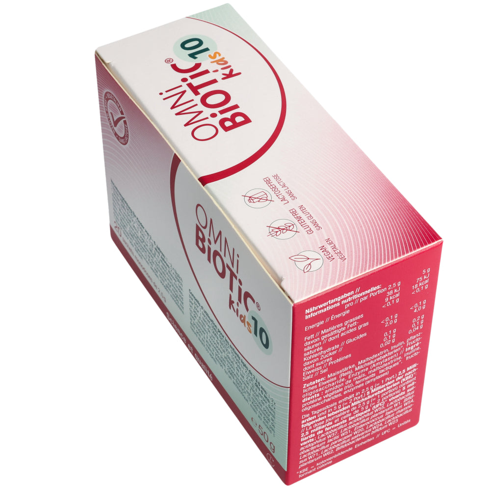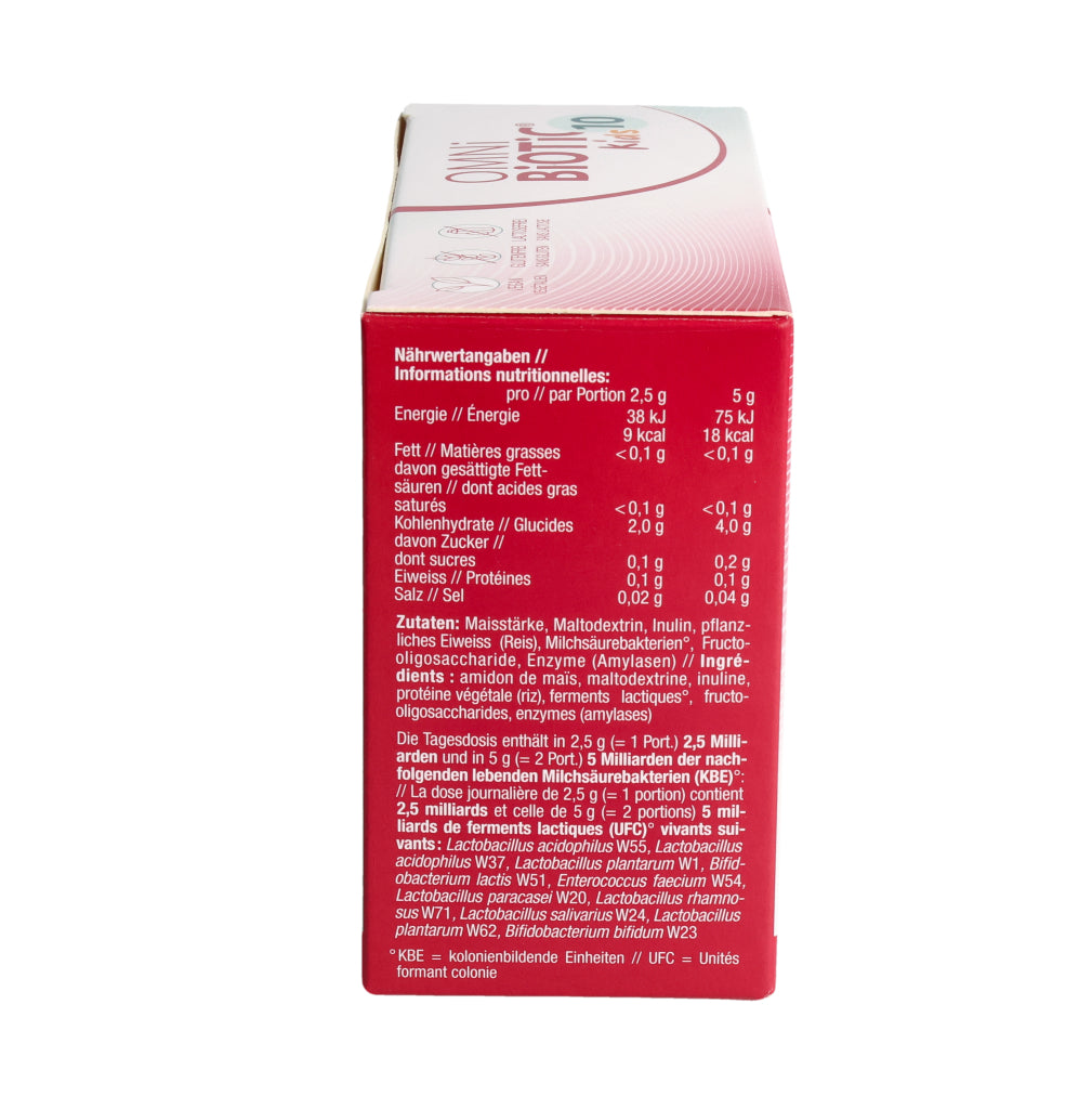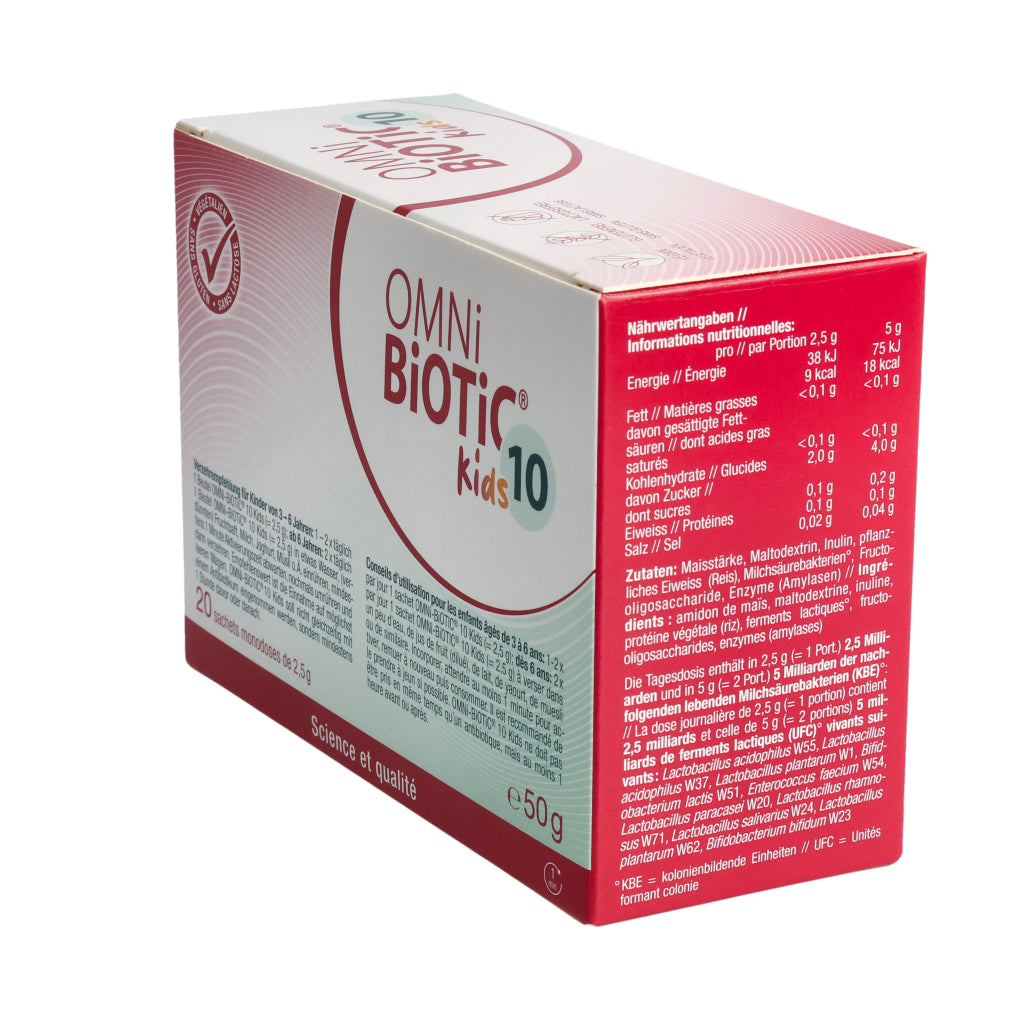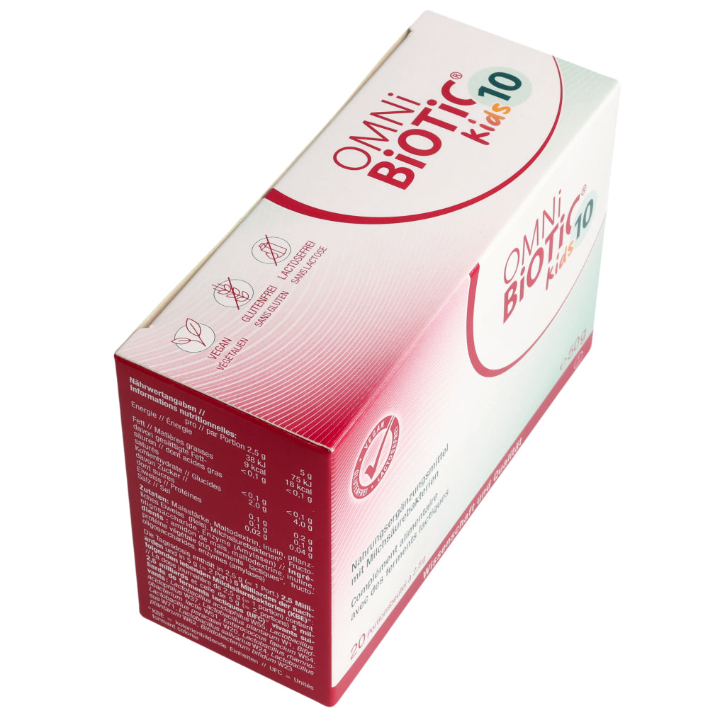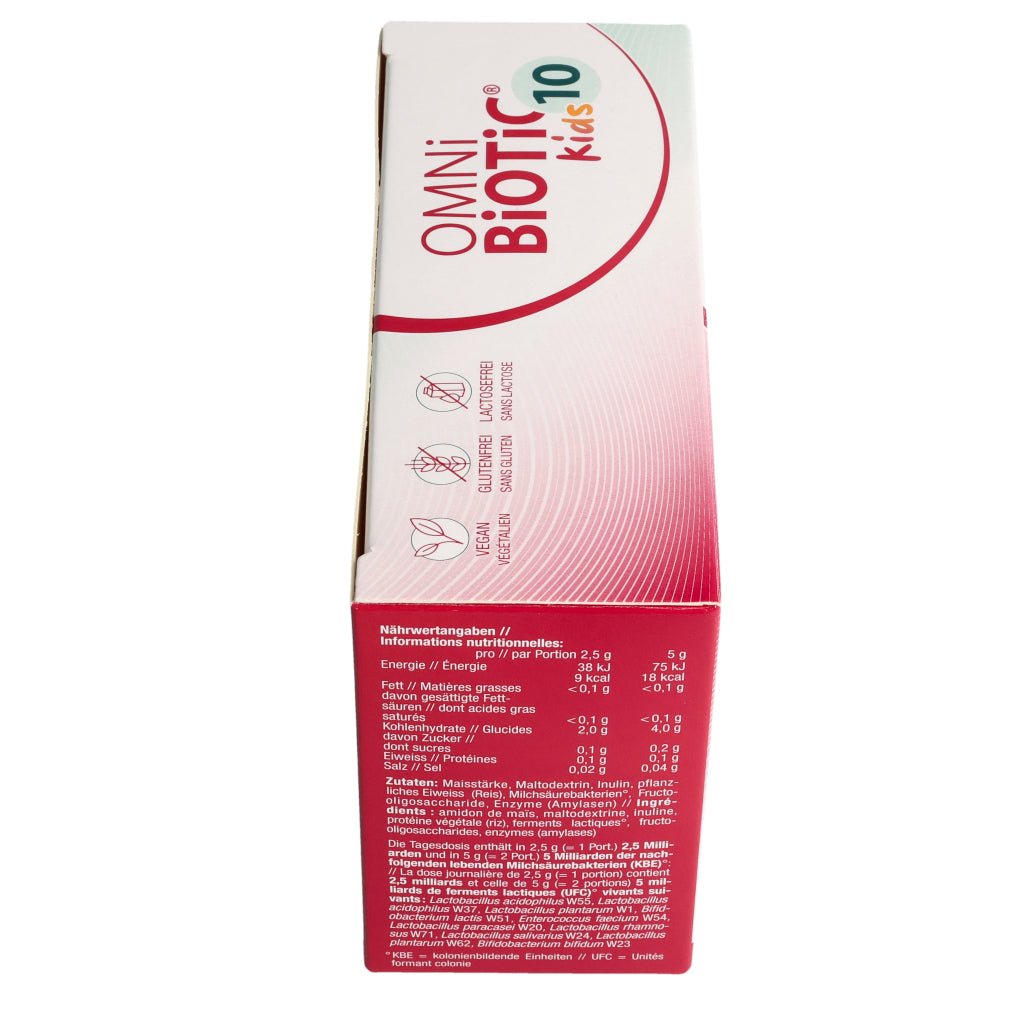 Kinder von 3– 6 Jahren: 1–2x täglich 1 Beutel OMNi-BiOTiC® 10 Kids (=2,5 g).