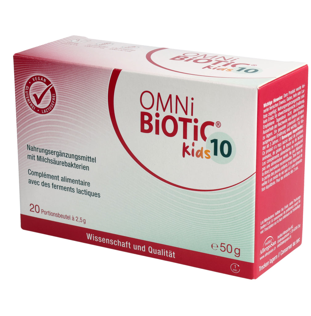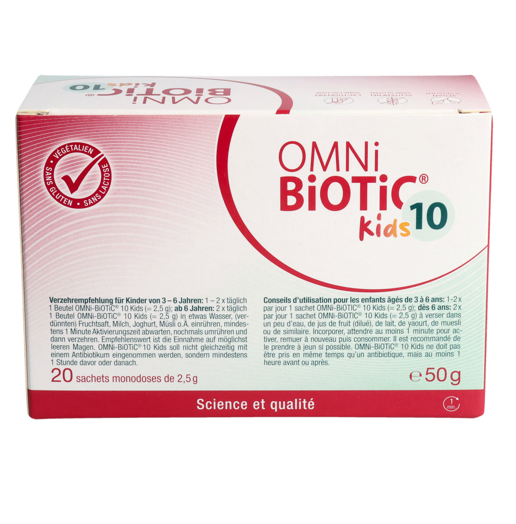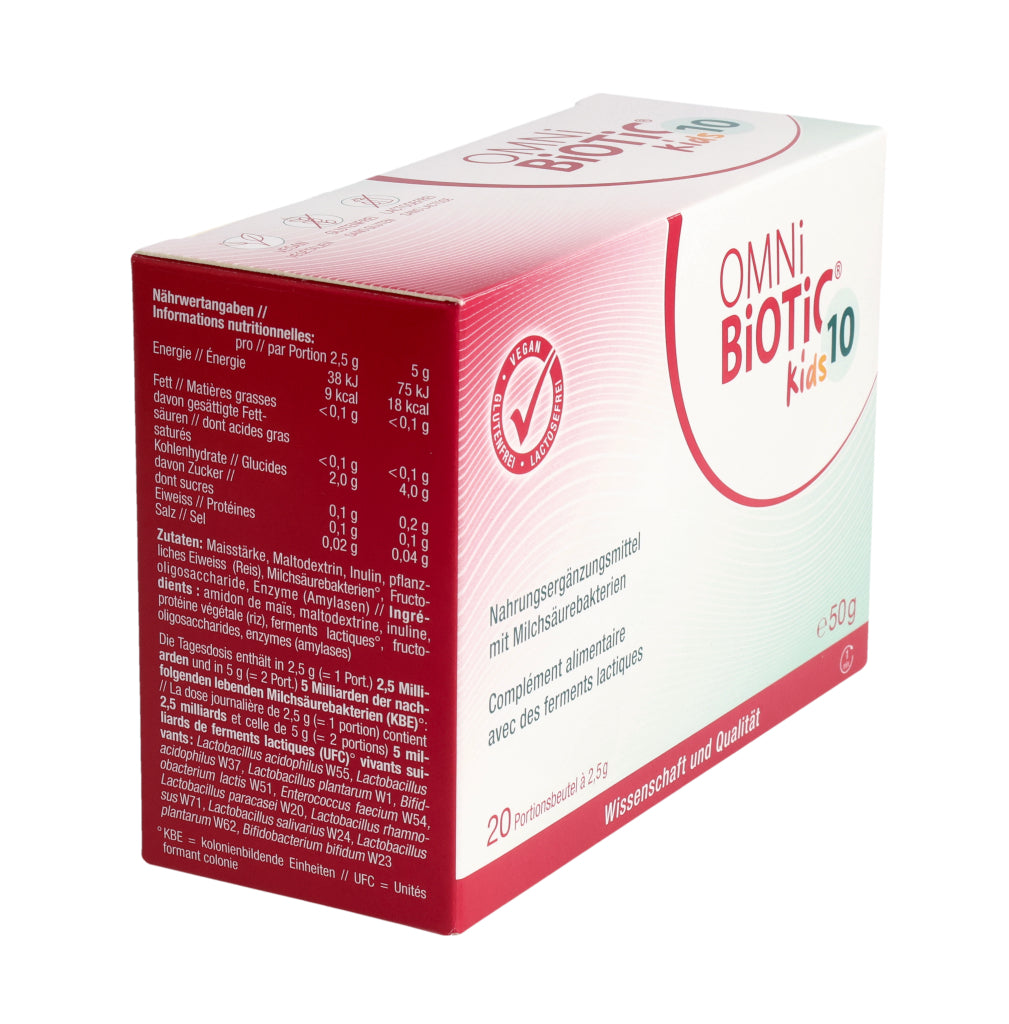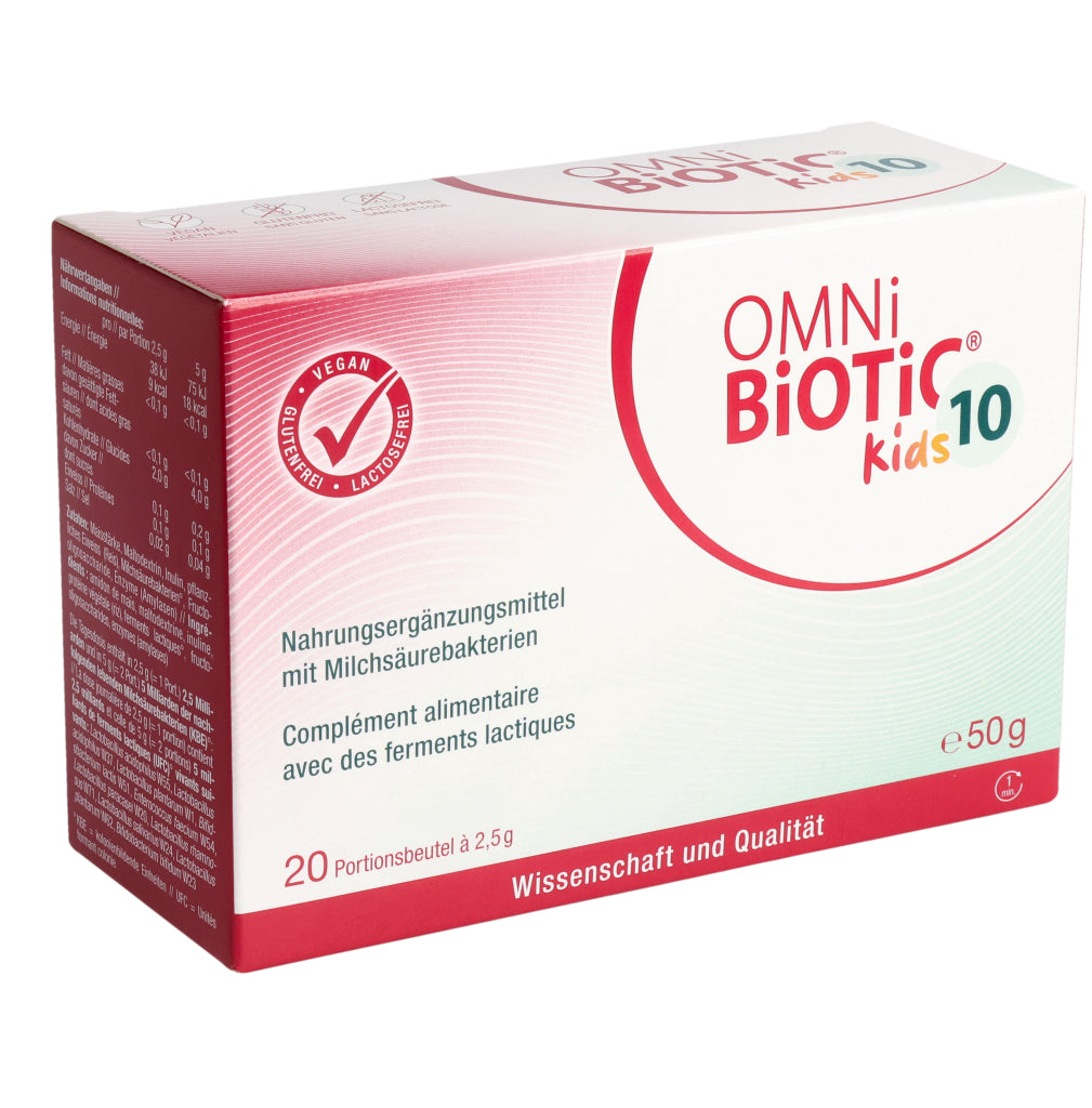 Kinder von 3– 6 Jahren: 1–2x täglich 1 Beutel OMNi-BiOTiC® 10 Kids (=2,5 g).