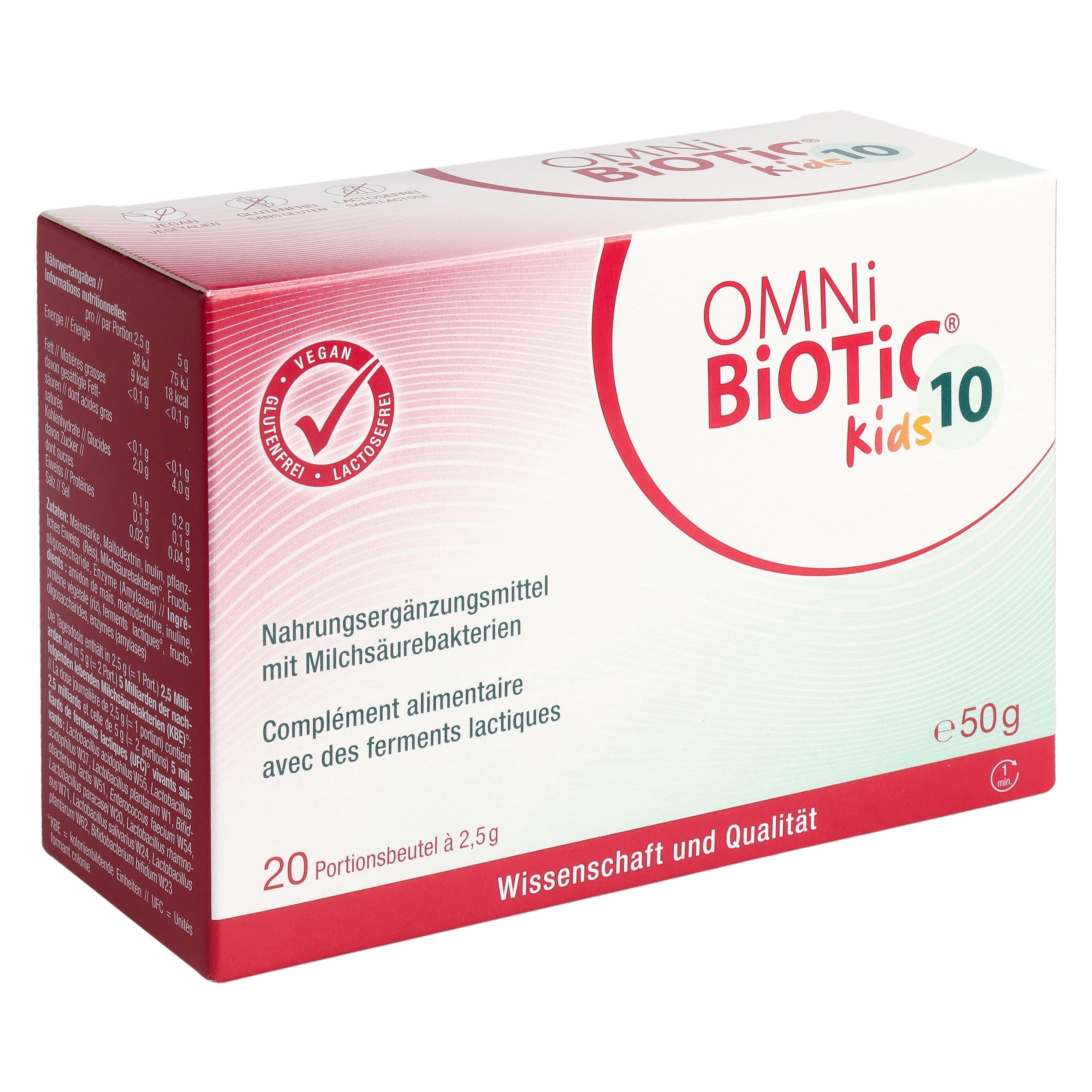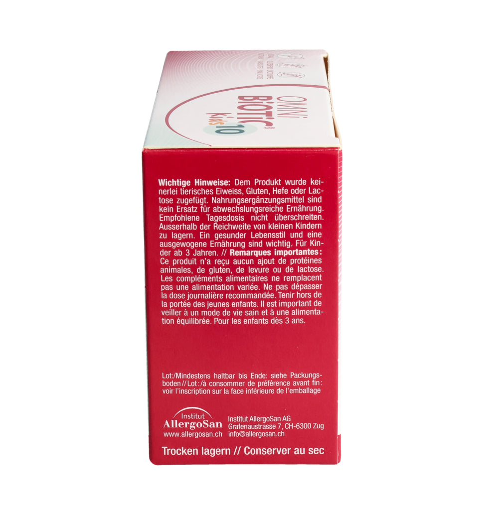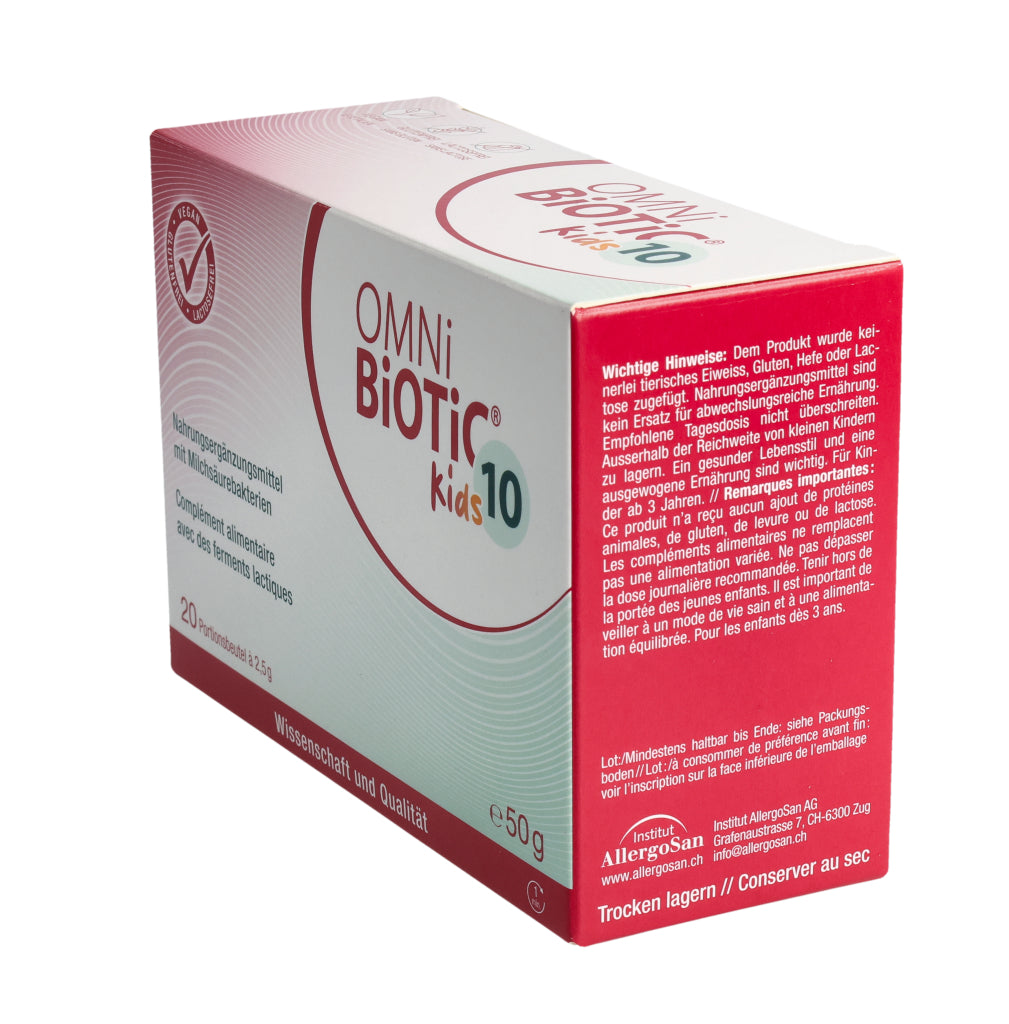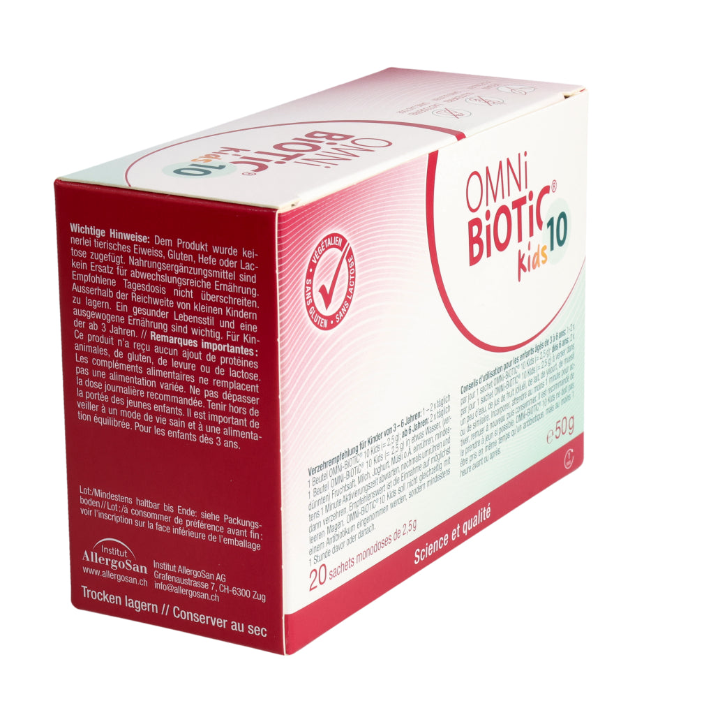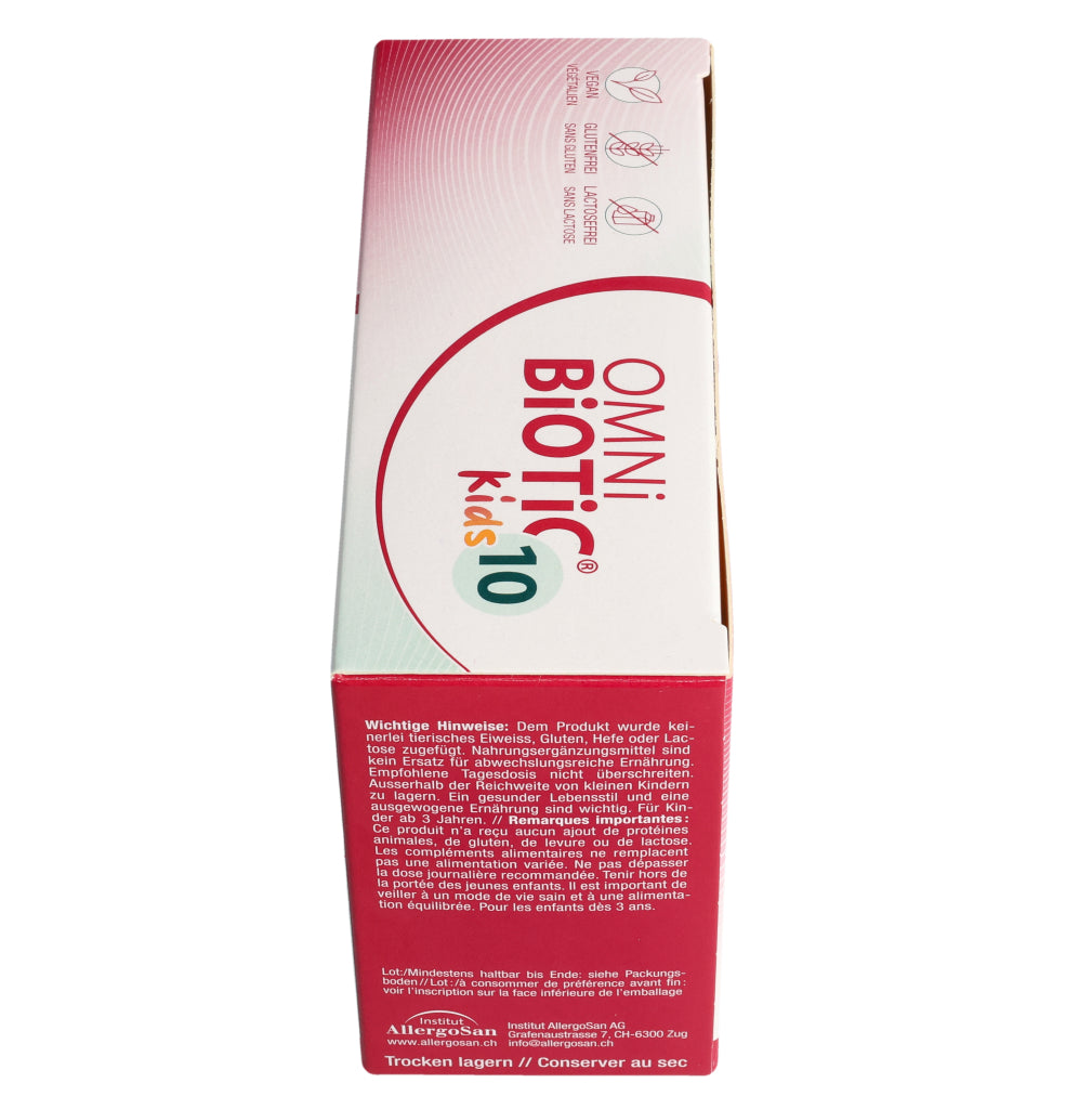Kinder von 3– 6 Jahren: 1–2x täglich 1 Beutel OMNi-BiOTiC® 10 Kids (=2,5 g).