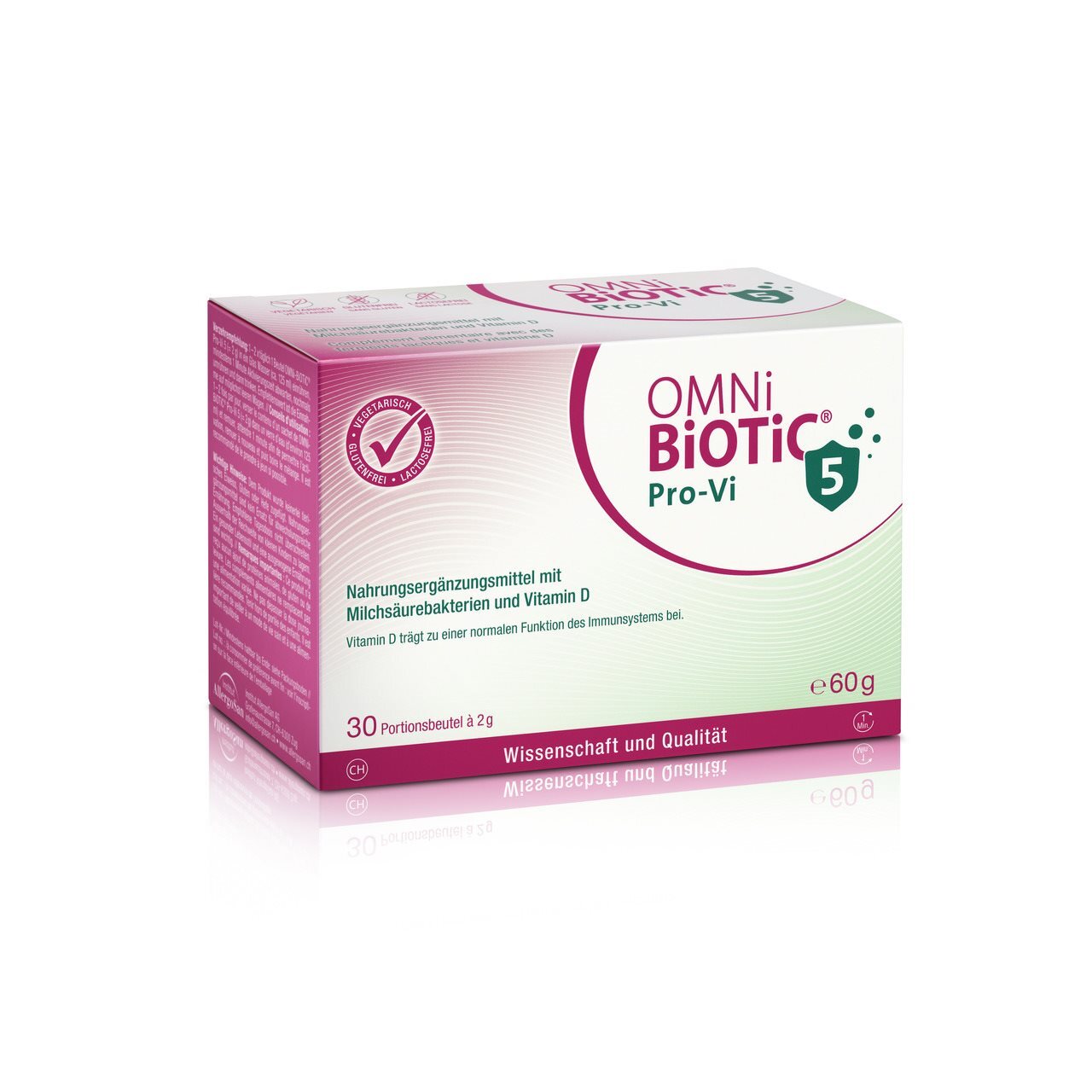 Schwangere und Stillende dürfen OMNi-BiOTiC® Pro-Vi 5 einnehmen. Die fünf Milchsäurebakterienstämme kommen schon natürlicherweise im menschlichen Darm vor. Nahrungsergänzungsmittel sind kein Ersatz für abwechslungsreiche Ernährung. Empfohlene Tagesdosis nicht überschreiten. Ausserhalb der Reichweite von kleinen Kindern zu lagern. Ein gesunder Lebensstil und eine ausgewogene Ernährung sind wichtig. Trocken lagern.
