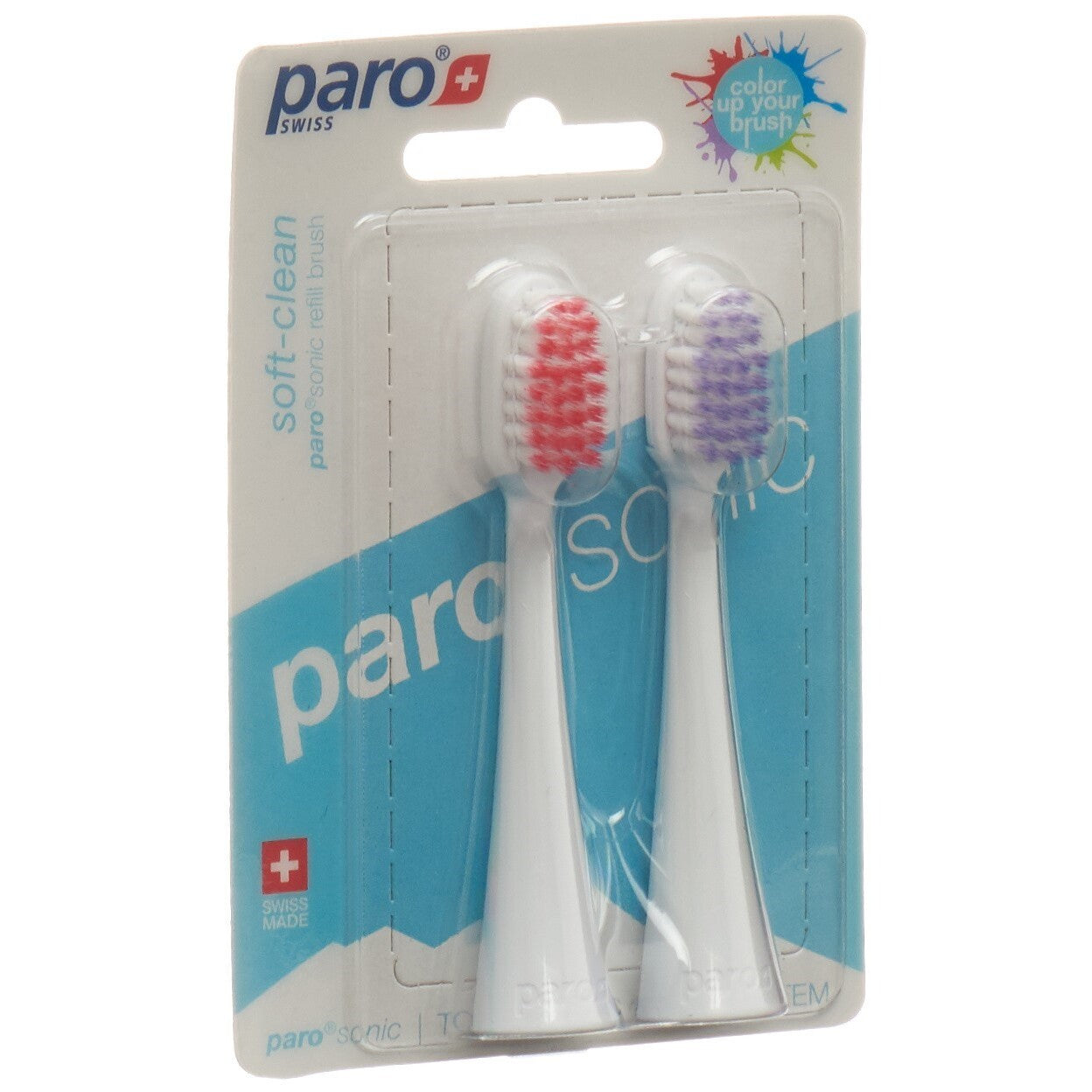 Der mit ausschliesslich feinen und spitz zulaufenden Filamenten bestückte paro®sonic soft-clean Bürstenkopf empfiehlt sich für die sanfte Reinigung wie auch bei empfindlichen Zahnhälsen.