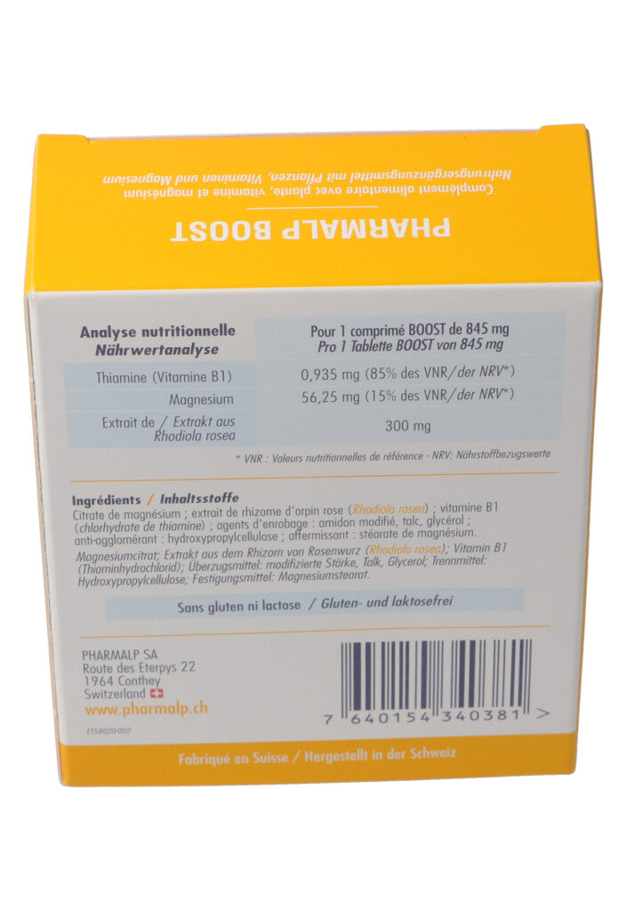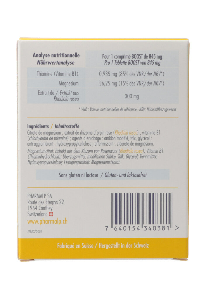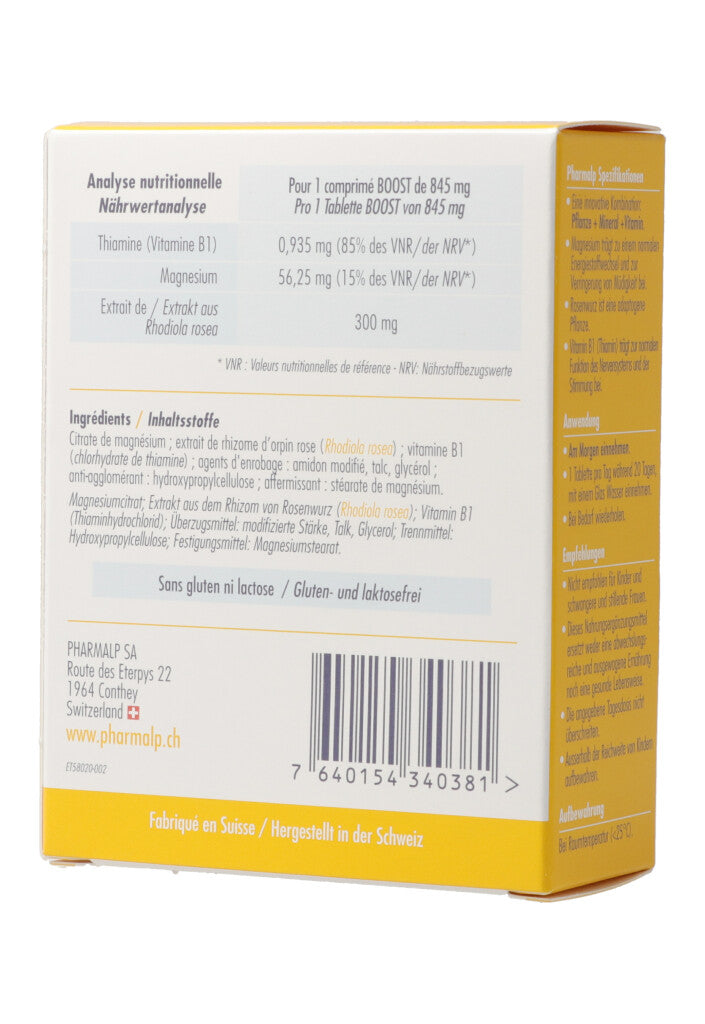 PHARMALP BOOST mit Rhodiola rosea, Vitamin B1 und Magnesium. Das ideale Nahrungsergänzungsmittel für:
