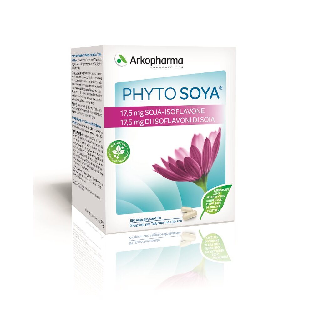 Nahrungsergänzungsmittel mit Sojaextrakt, reich an Isoflavonen. Phyto Soya besteht aus einem kontrollierten hochwertigen Sojaextrakt aus kontrolliertem Anbau und aus einem nicht genetisch veränderten Organismus (GVO). Verzehrsempfehlung: Nahrungsergänzungsmittel für Frauen ab 45 Jahren 2 Kapseln pro Tag, 1 morgens und 1 abends zu den Mahlzeiten mit einem Glas Wasser einnehmen. Die empfohlene Tagesdosis nicht überschreiten. Für Erwachsene. Nicht empfohlen für schwangere oder stillende Frauen. Nicht empfohlen für Frauen bei persönlicher oder familiärer Krankengeschichte mit Brustkrebs. Nahrungsergänzungsmittel sollen nicht als Ersatz für eine abwechslungsreiche und ausgewogene Ernährung und eine gesunde Lebensweise verwendet werden. Vor Hitze, Licht und Feuchtigkeit geschützt und ausserhalb der Reichweite von kleinen Kindern aufbewahren.