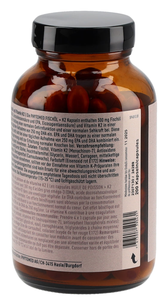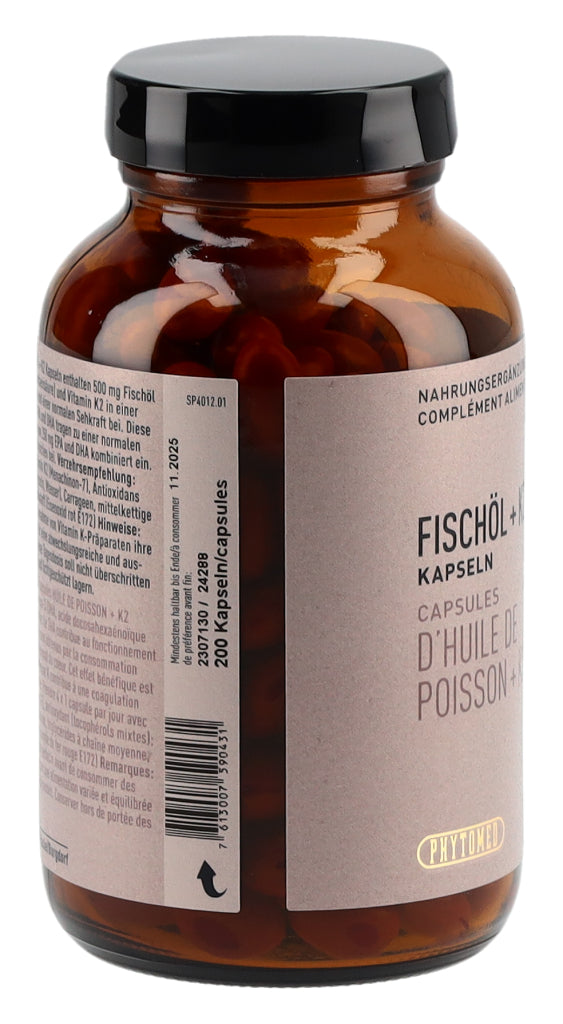 PHYTOMED Fischöl + K2 Kaps Glas 200 Stk