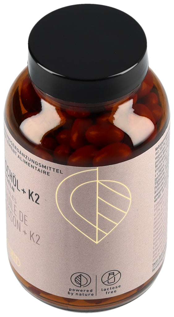 Nahrungsergänzungsmittel mit Fischöl und Vitamin K2.