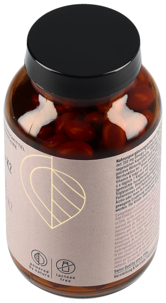 Fischöl, Vitamin K2 (Menachinon-7), Antioxidans (gemischte Tocopherole); Kapselhülle: modifizierte Stärke, Feuchthaltemittel (Glycerin, Wasser),