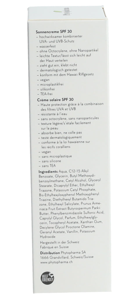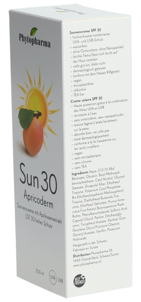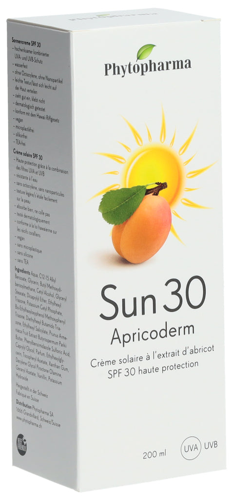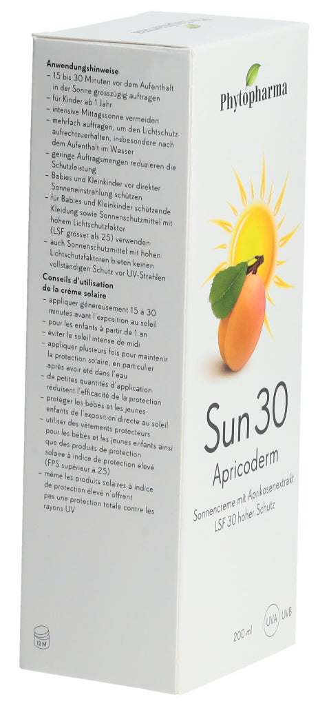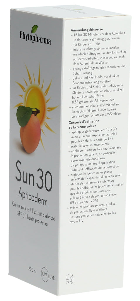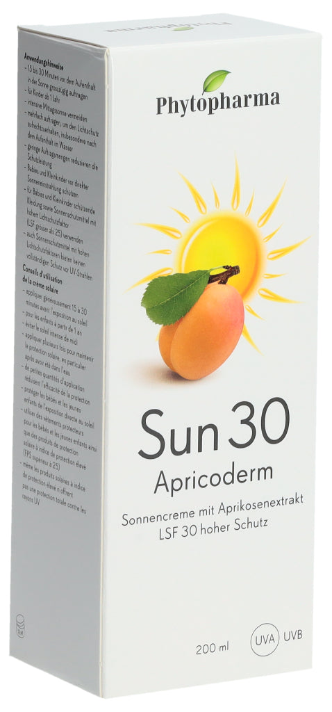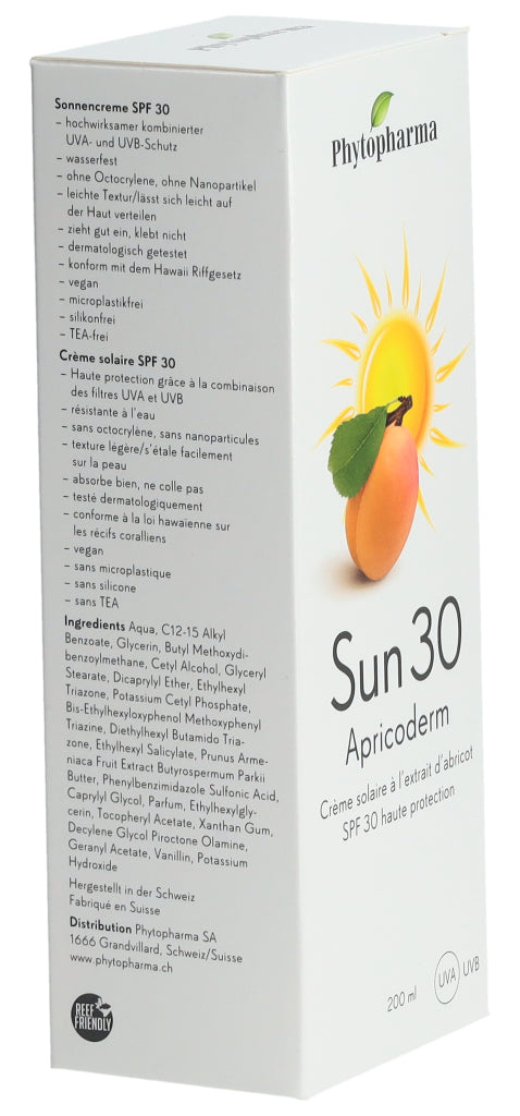 Sonnencreme mit Aprikosenextrakt LSF 30 hoher Schutz.